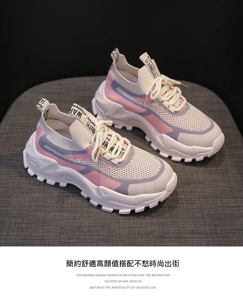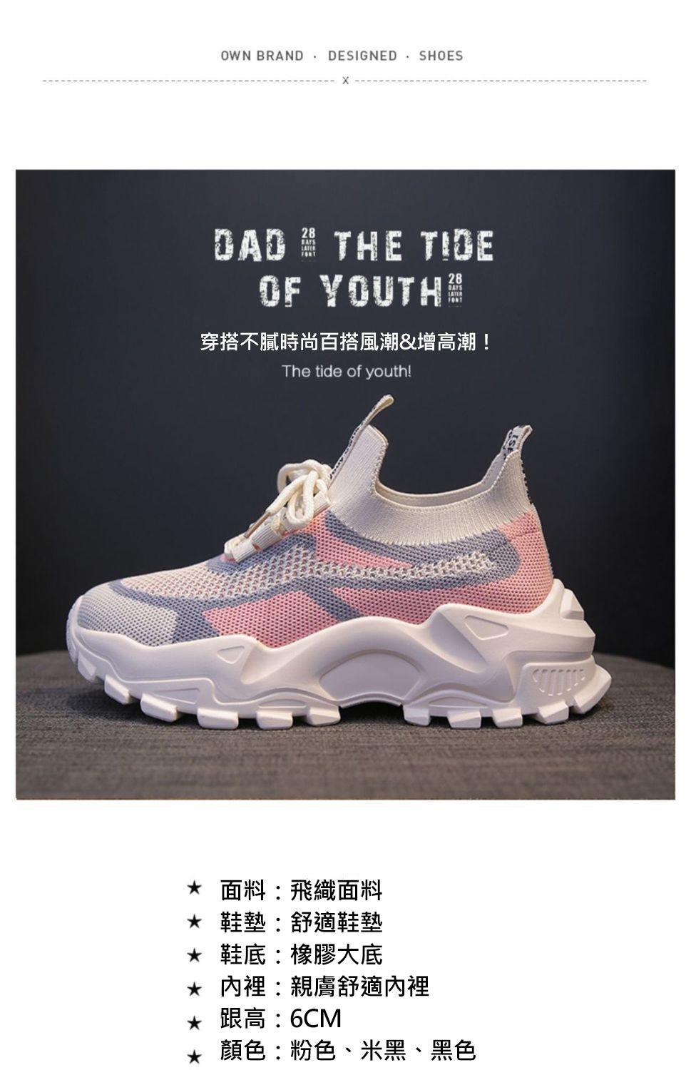 【舒適增高5cm!】新款女士透氣休閒輪胎底老爹鞋