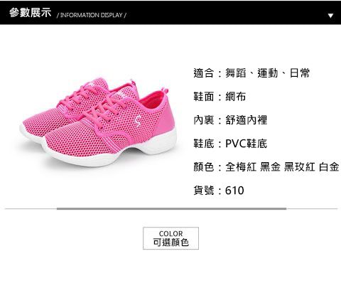 【舞蹈學院推薦!】網面透氣跳舞鞋【玫紅色】+【黑金色】各一雙(優惠400)