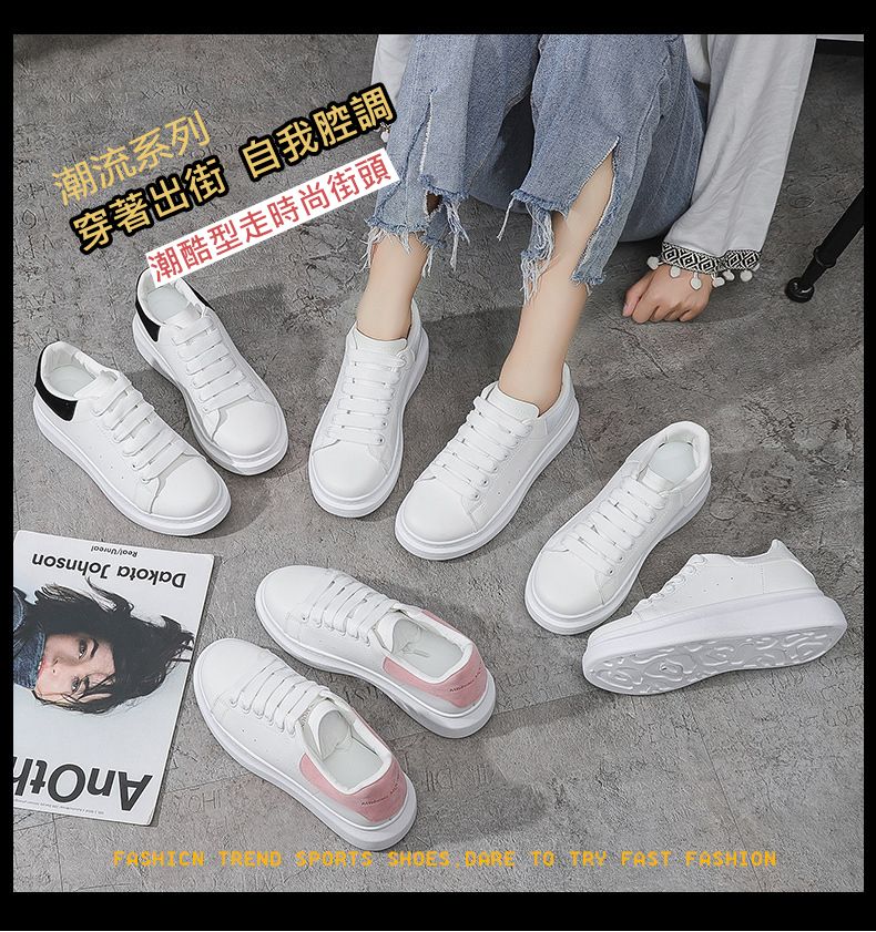 【百搭神器】春季新款女士透氣厚底小白鞋【白黑色】+【白粉色】各一雙(優惠400)