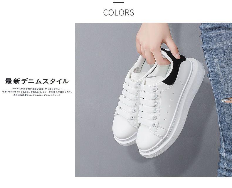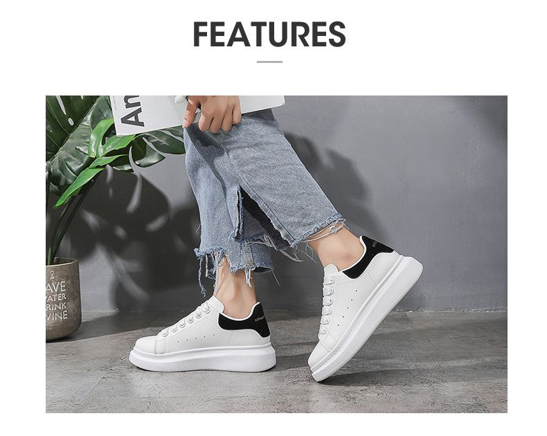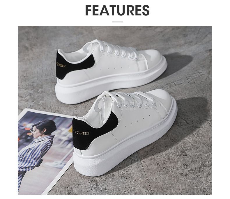 【百搭神器】春季新款女士透氣厚底小白鞋【白黑色】一雙