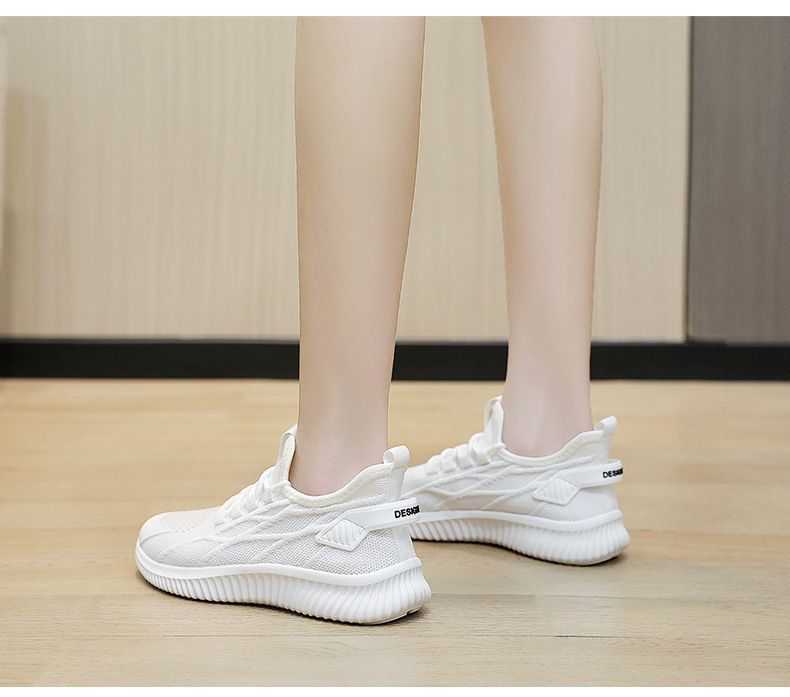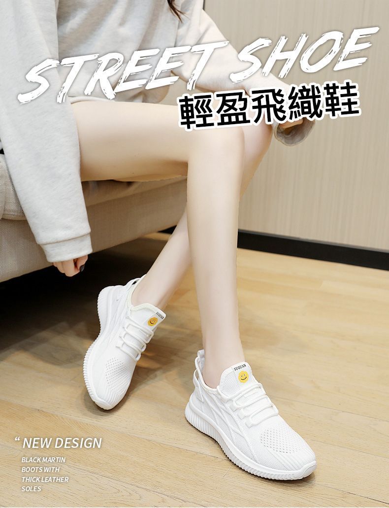 【小個子也能大長腿!】春夏女士新款飛織透氣鞋【白色】+【米白色】各一雙(優惠400)
