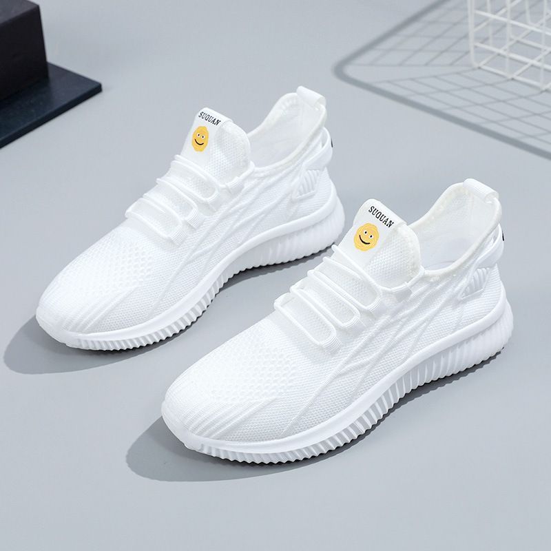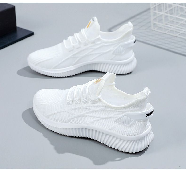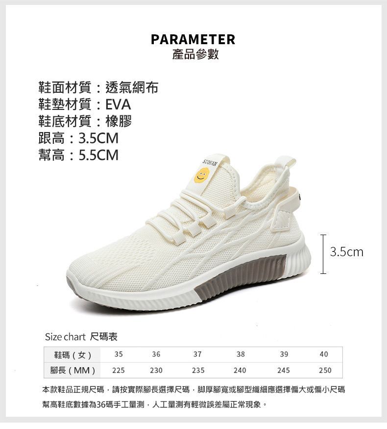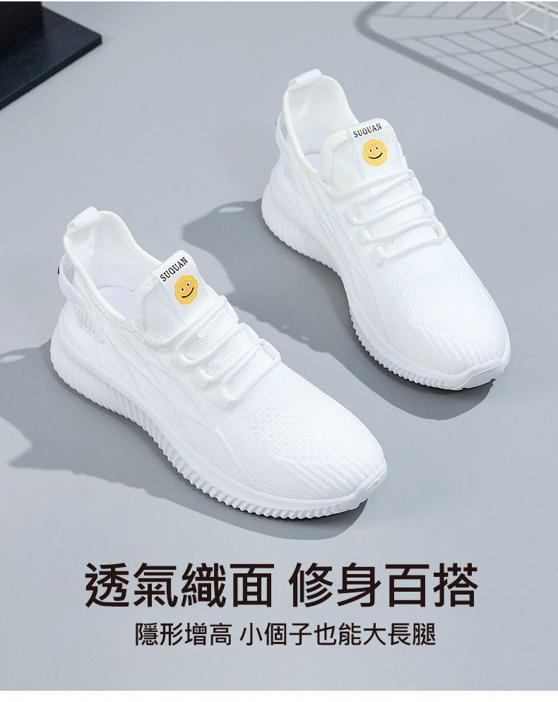 【小個子也能大長腿!】春夏女士新款飛織透氣鞋【白色】一雙