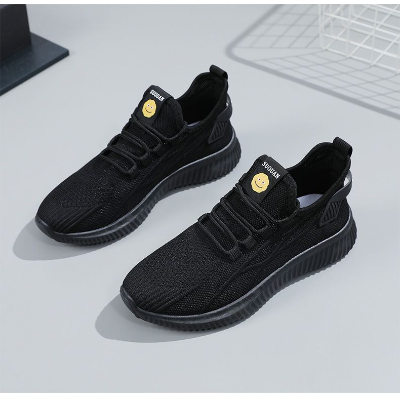 【小個子也能大長腿!】春夏女士新款飛織透氣鞋【黑色】一雙