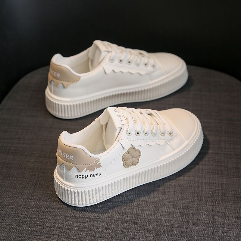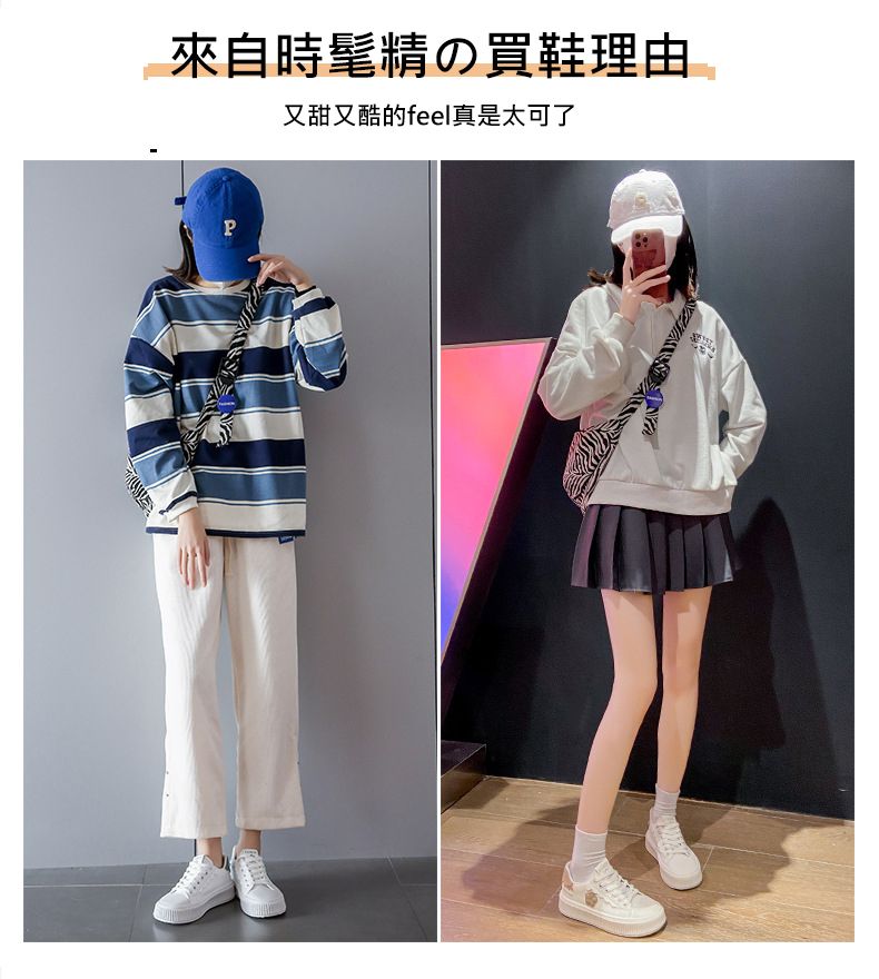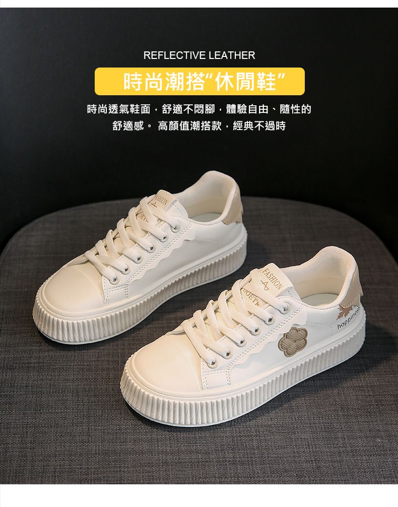 【舒適有顏值!】新款女士厚底增高休閒運動鞋【白粉色】+【卡其色】各一雙(優惠400)