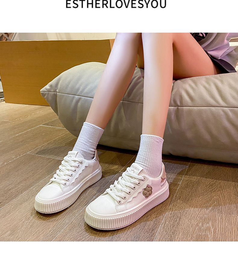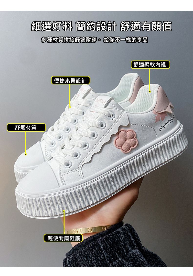 【舒適有顏值!】新款女士厚底增高休閒運動鞋【白粉色】一雙