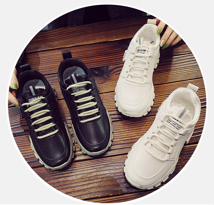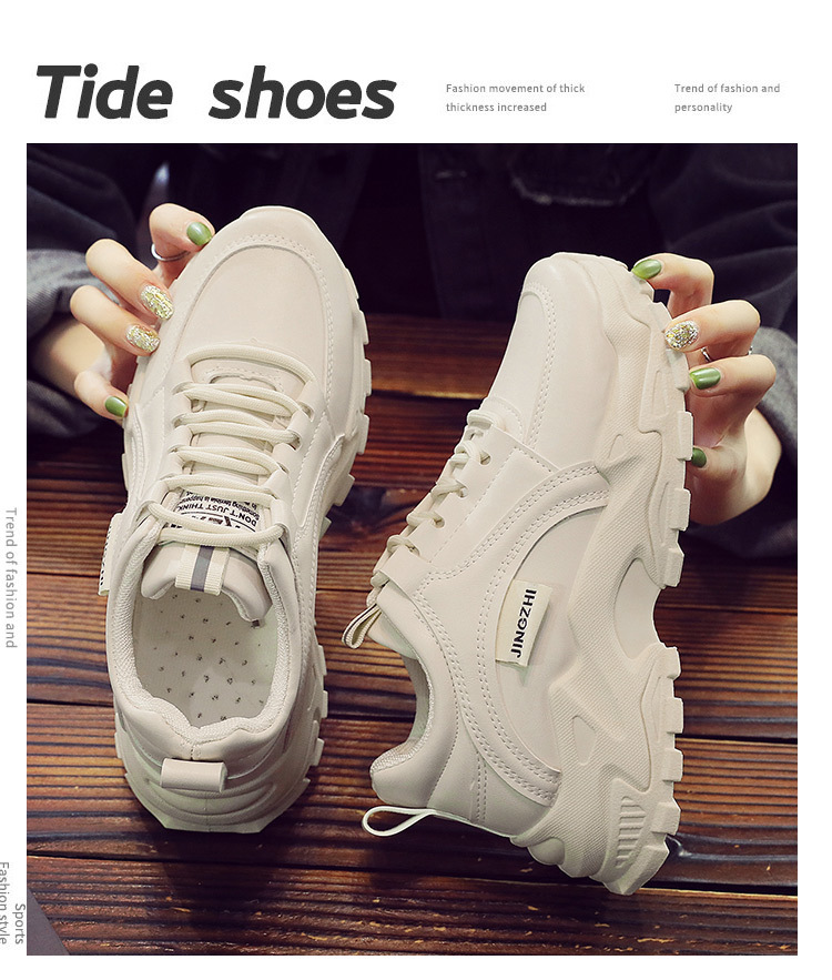 【凹造型必備】女士增高修腿型秋冬厚底老爹鞋【米色】一雙