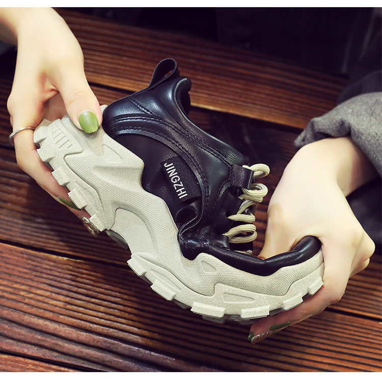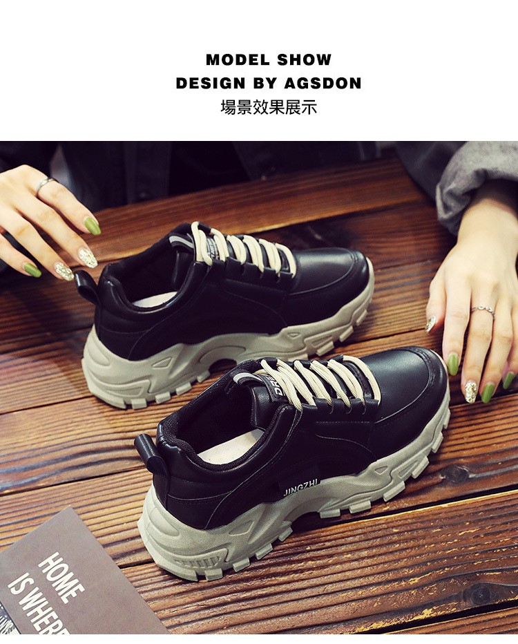 【凹造型必備】女士增高修腿型秋冬厚底老爹鞋【黑色】+【米色】各一雙(優惠400)
