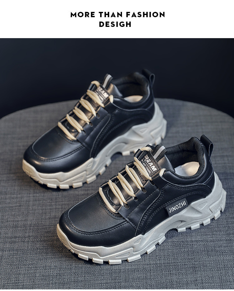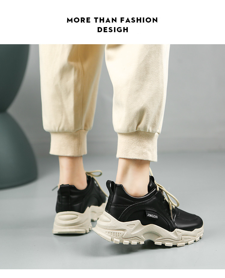 【凹造型必備】女士增高修腿型秋冬厚底老爹鞋【黑色】一雙