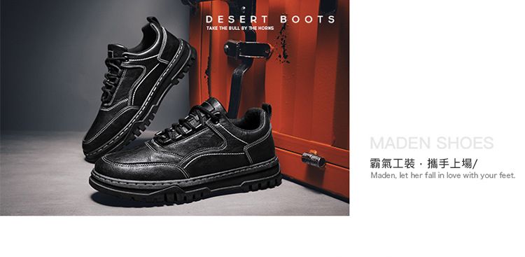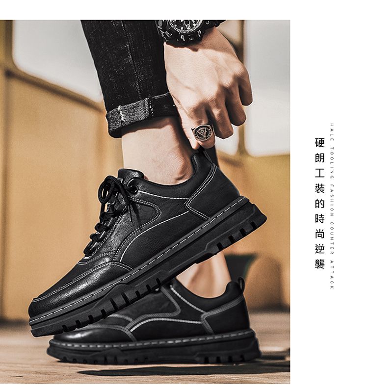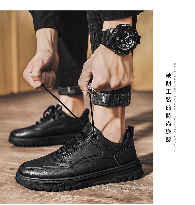 【源頭廠家】細膩皮革鞋面柔軟耐穿大底男士低幫馬丁靴【黑白色】+【全黑色】各一雙(優惠400)