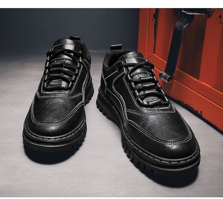 【源頭廠家】細膩皮革鞋面柔軟耐穿大底男士低幫馬丁靴【全黑色】一雙