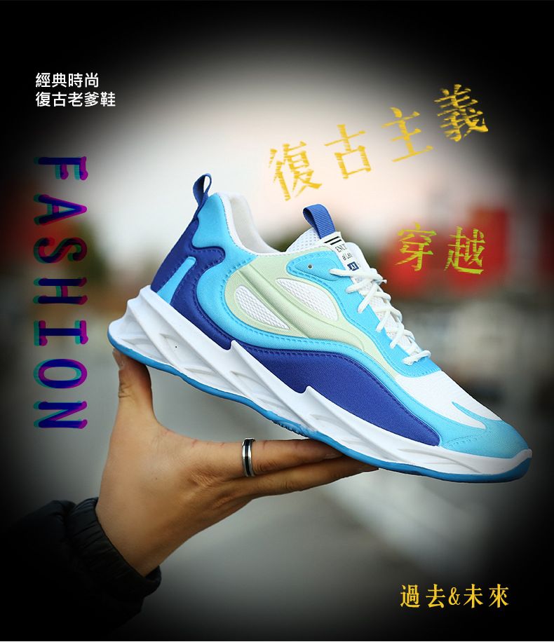 運動風多色拼接鞋面刀鋒男鞋【藍白深藍色】一雙