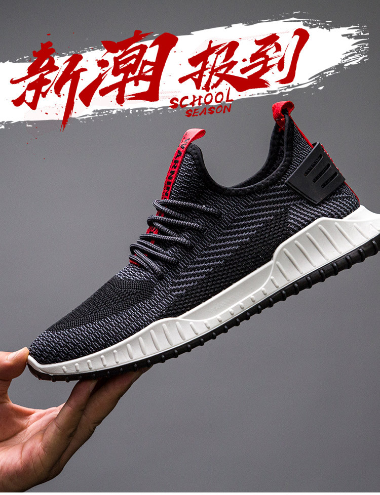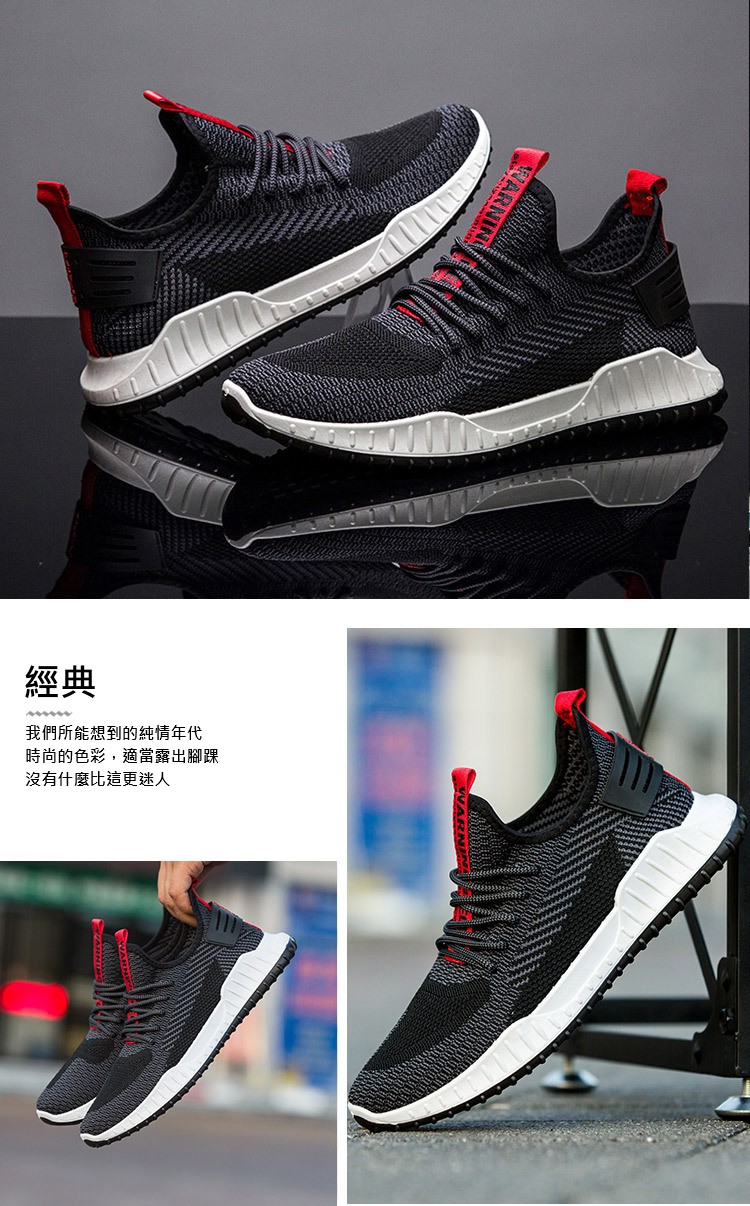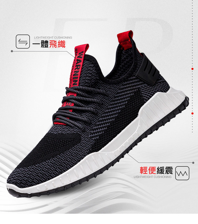 柔韌透氣輕便緩震一體飛織跑鞋【買一送一】【黑色】+【灰色】各一雙