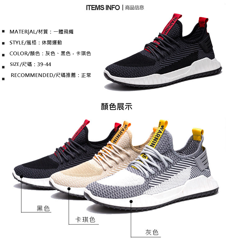 柔韌透氣輕便緩震一體飛織跑鞋【買一送一】【卡其色】+【灰色】各一雙