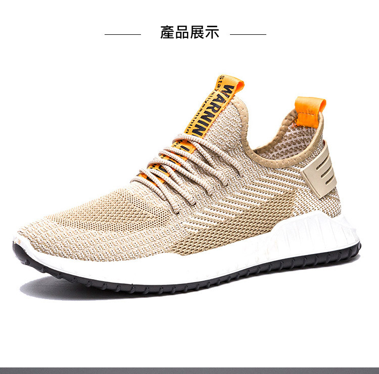 柔韌透氣輕便緩震一體飛織跑鞋【買一送一】【卡其色】兩雙