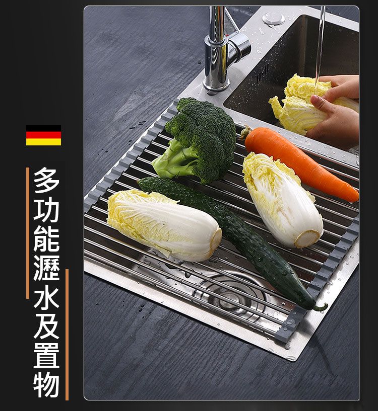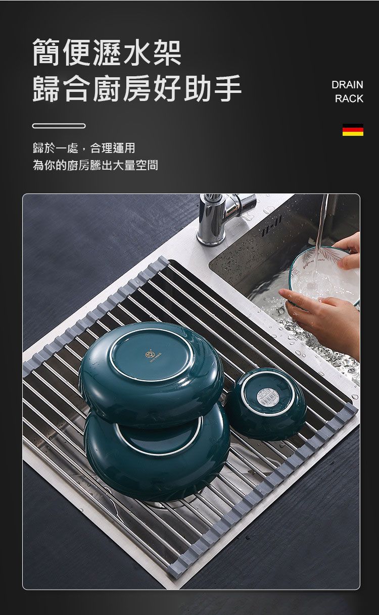 304不鏽鋼可折疊瀝水架【黑色】+【灰色】各一組(優惠400)