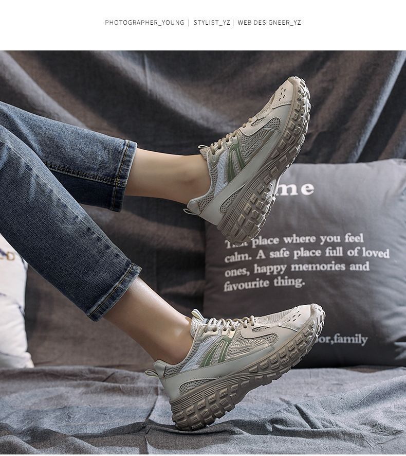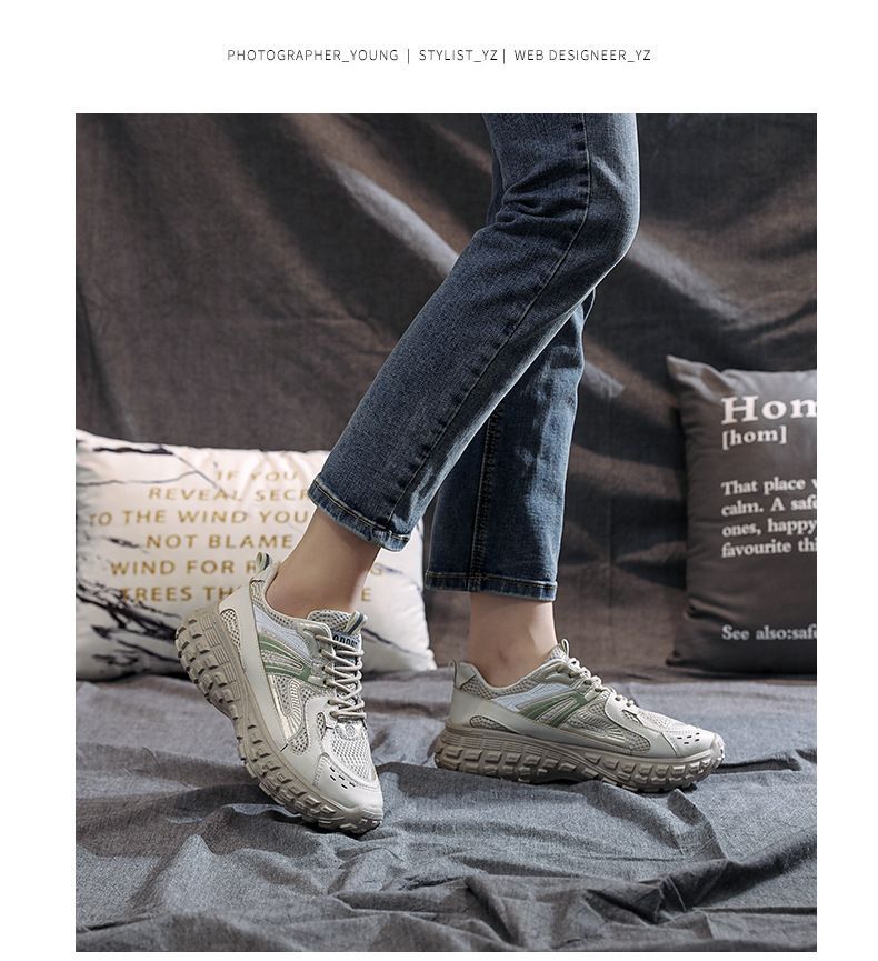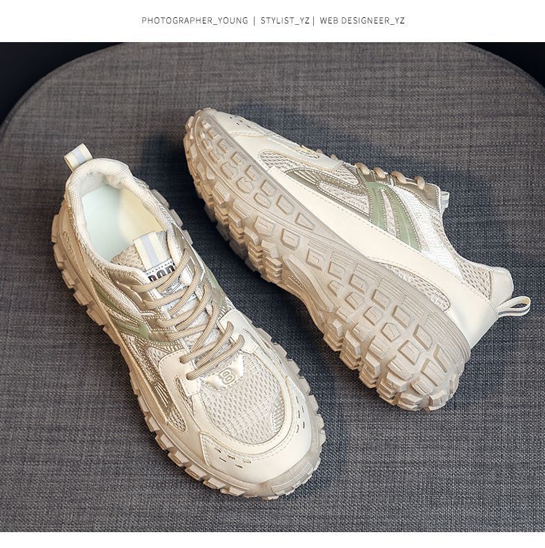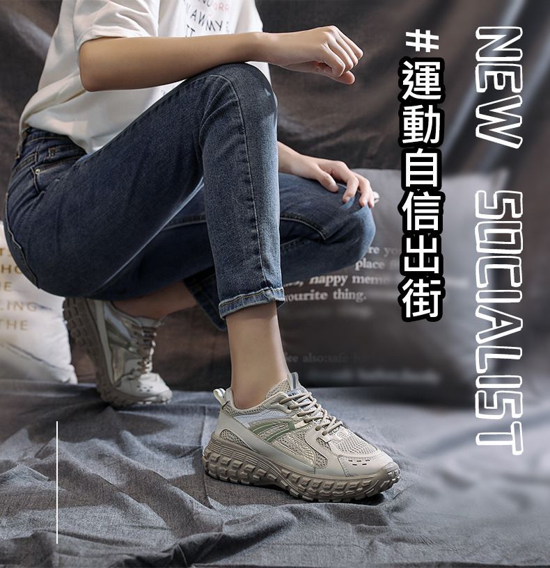 【舒適增高5cm!】新款女士透氣休閒輪胎底老爹鞋【米色】一雙
