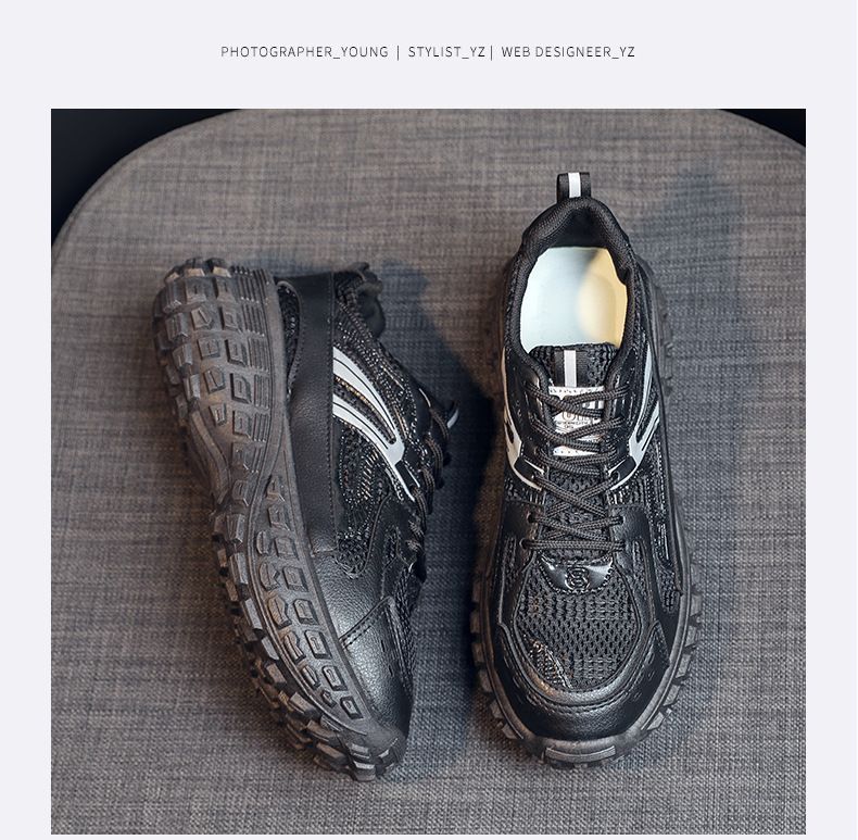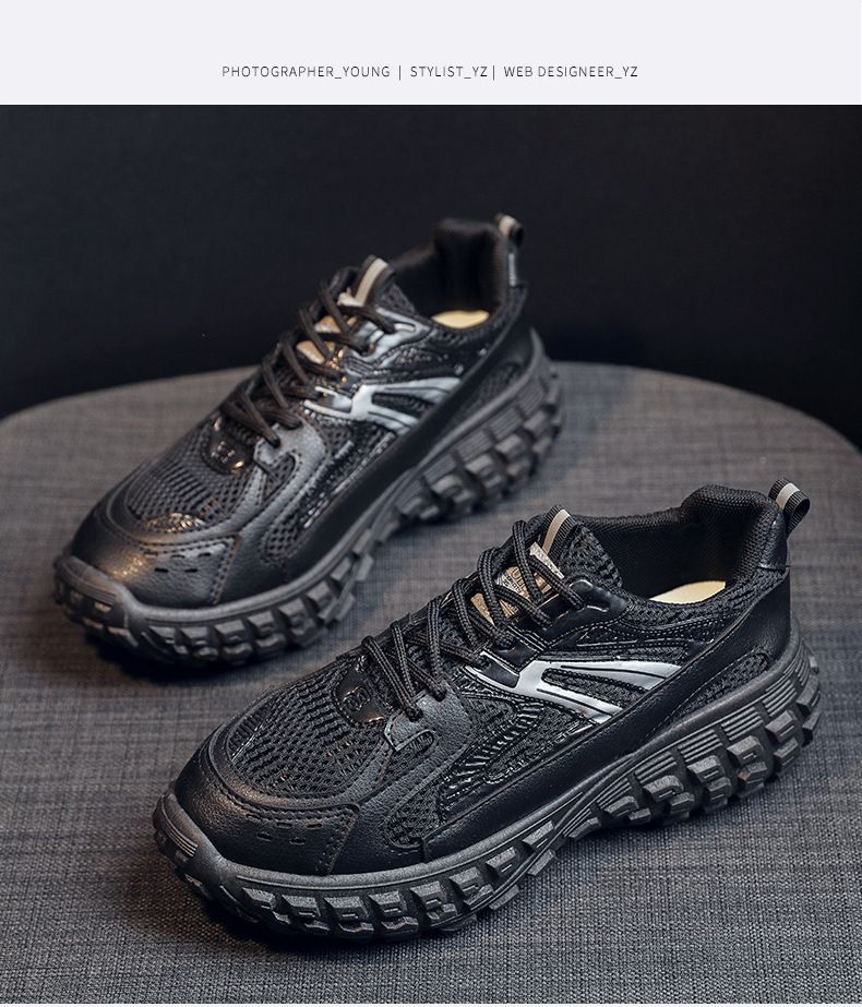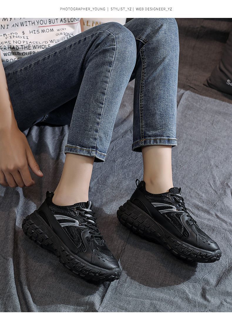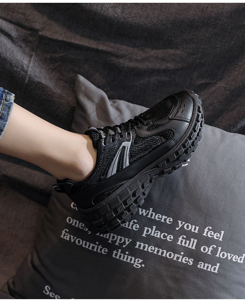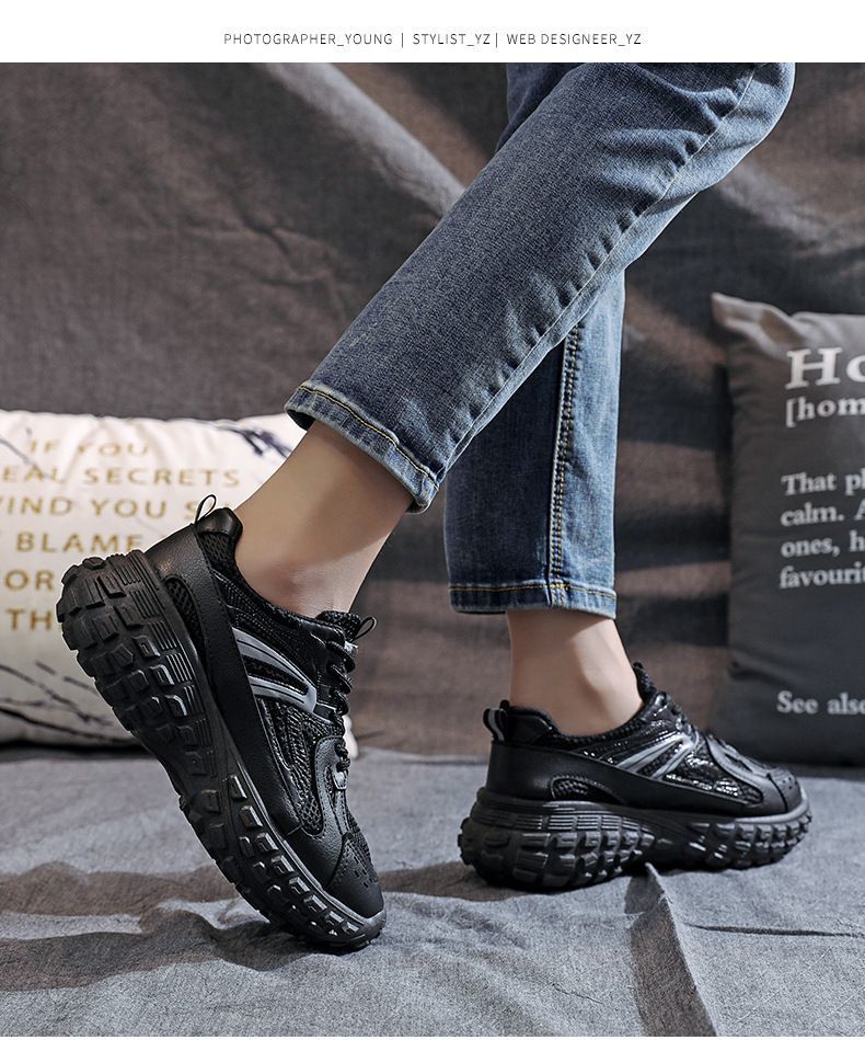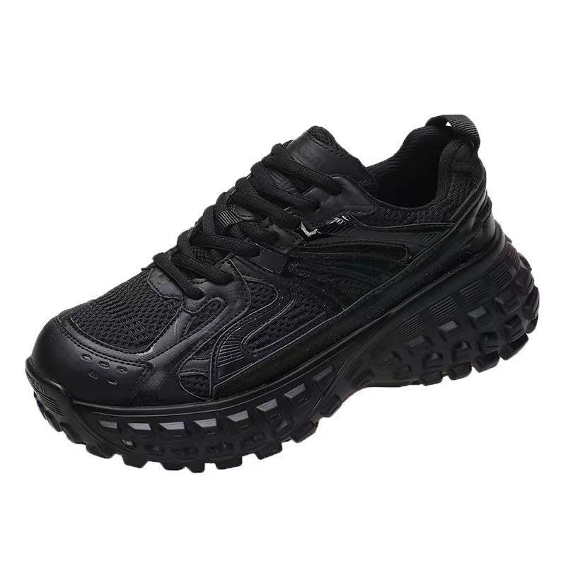 【舒適增高5cm!】新款女士透氣休閒輪胎底老爹鞋【黑色】一雙