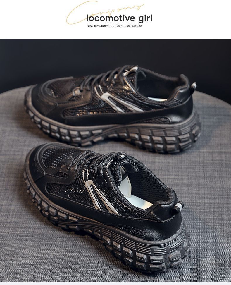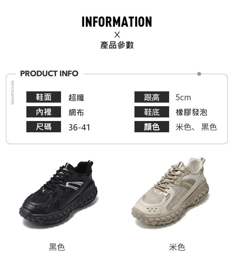 【舒適增高5cm!】新款女士透氣休閒輪胎底老爹鞋【黑色】+【米色】各一雙(優惠400)