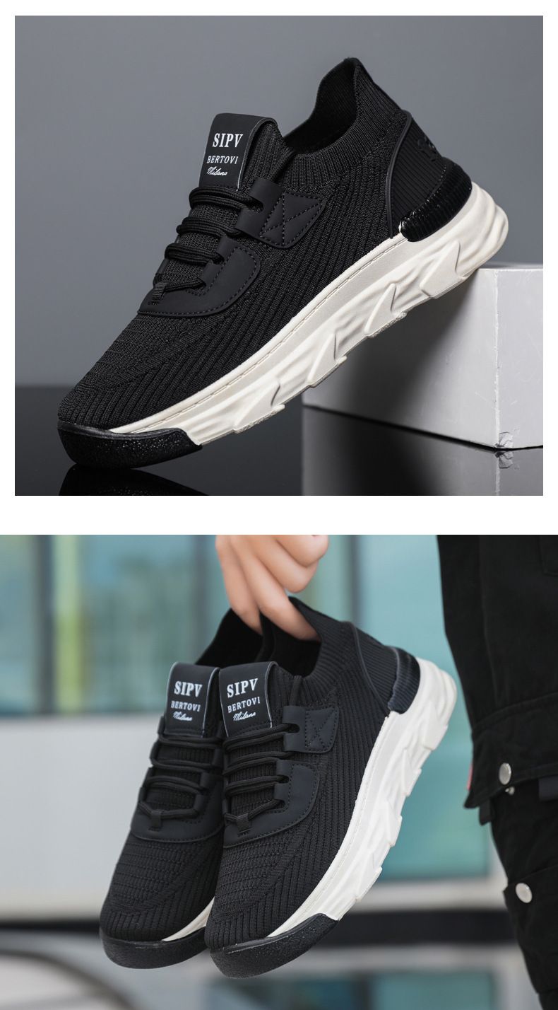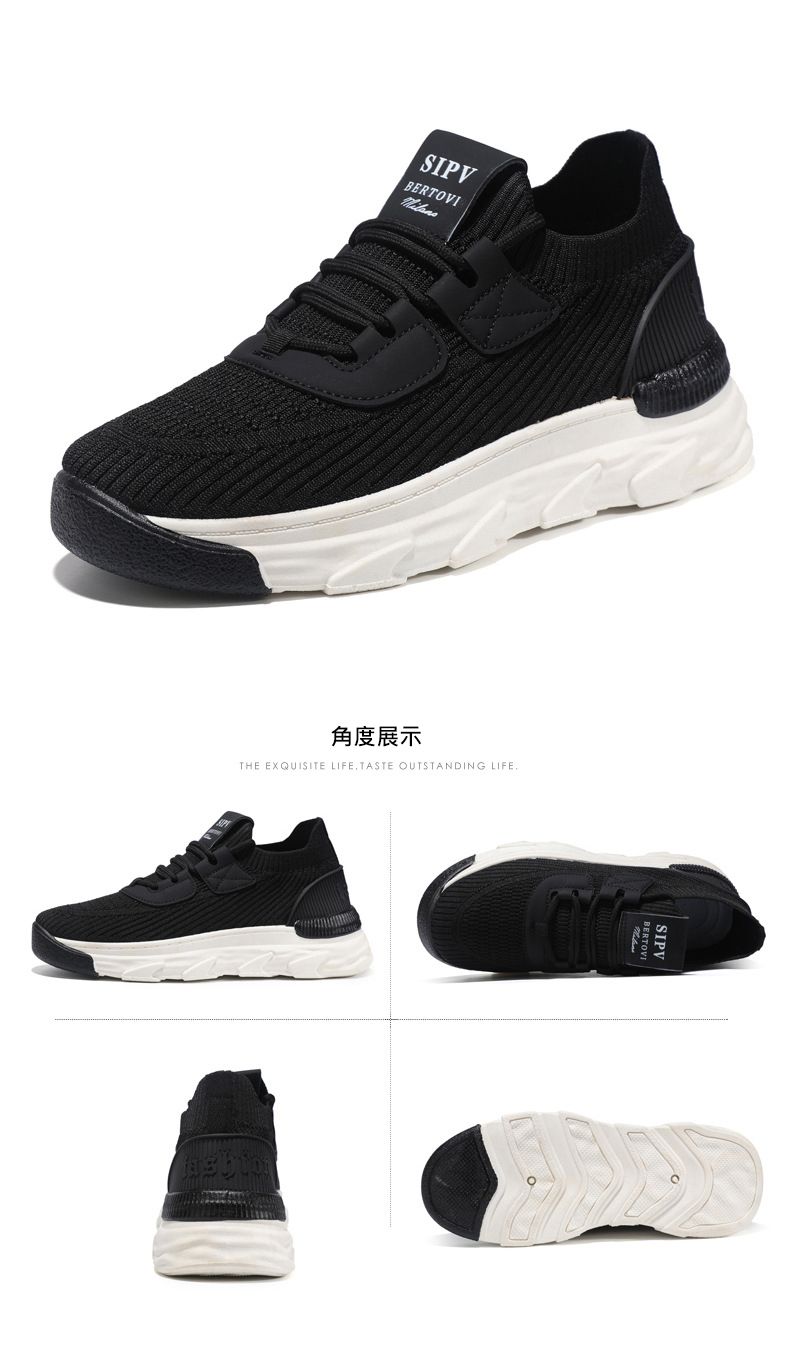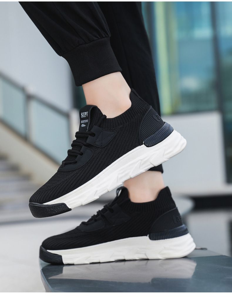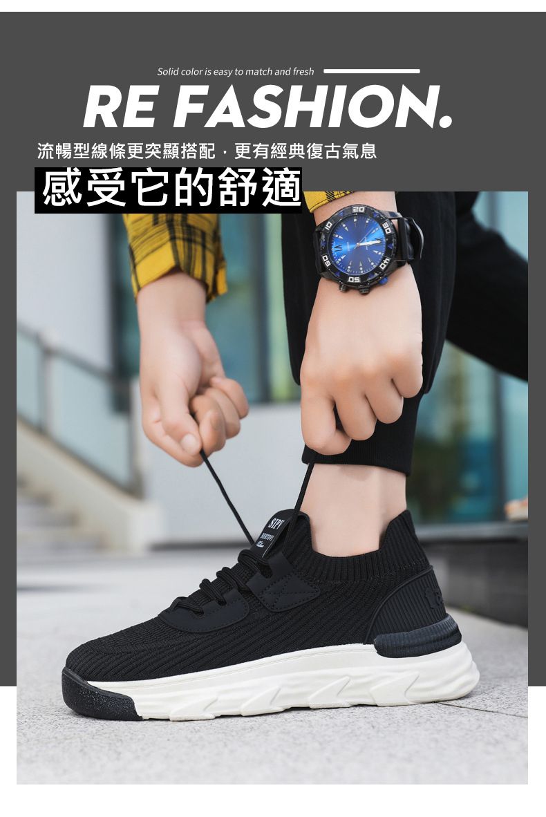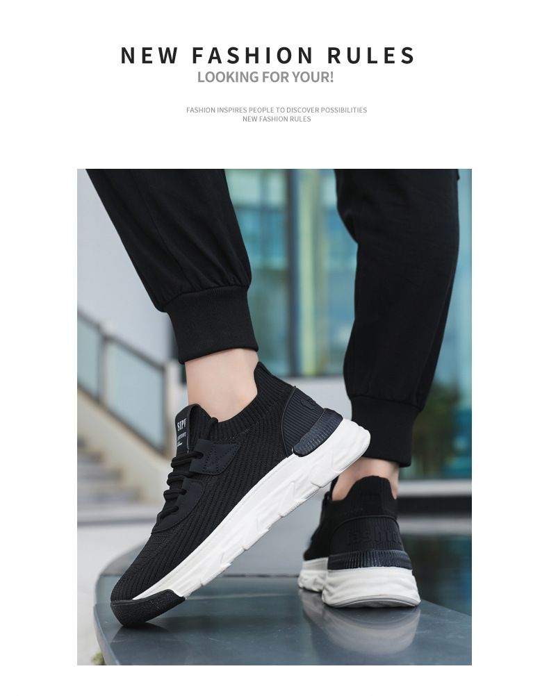 【無拘無束!】大碼春秋透氣針織男運動鞋【黑色】一雙