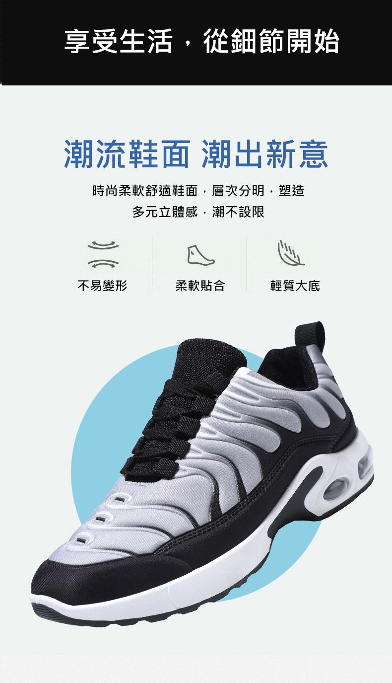 男士網布繫帶百搭運動鞋【灰色】+【黑色】各一雙(優惠400)