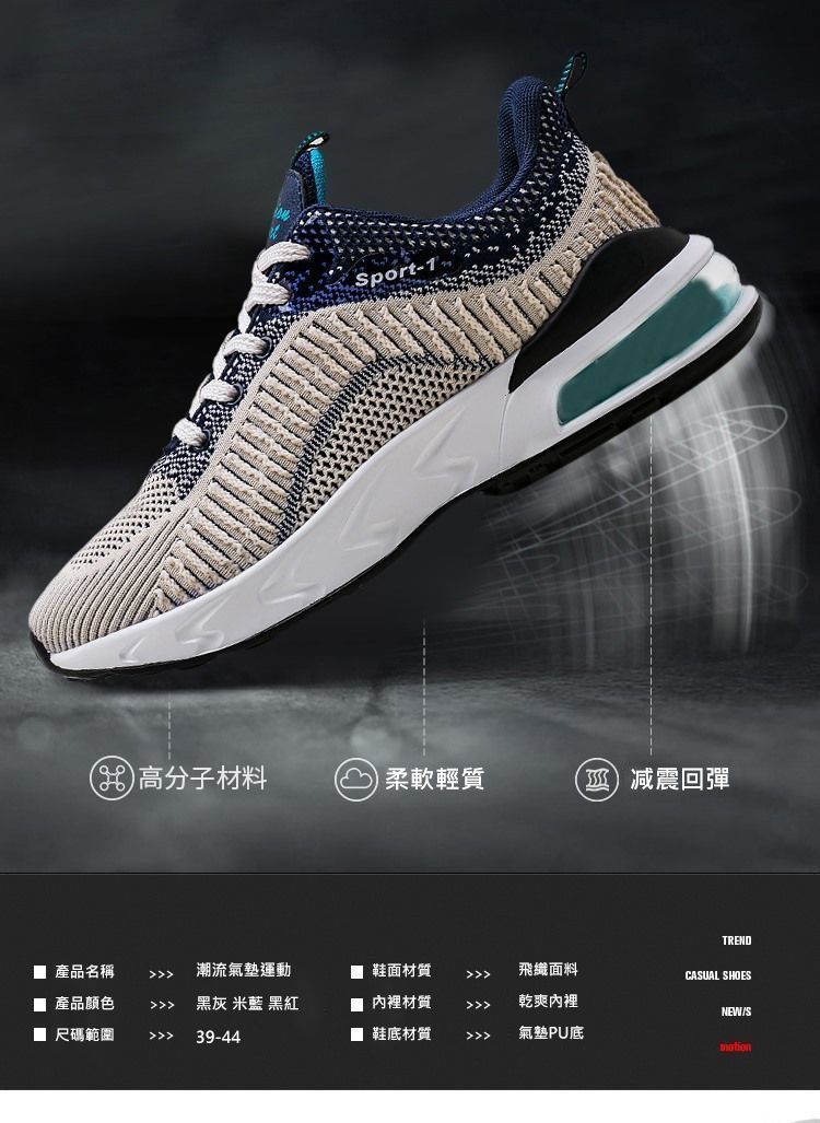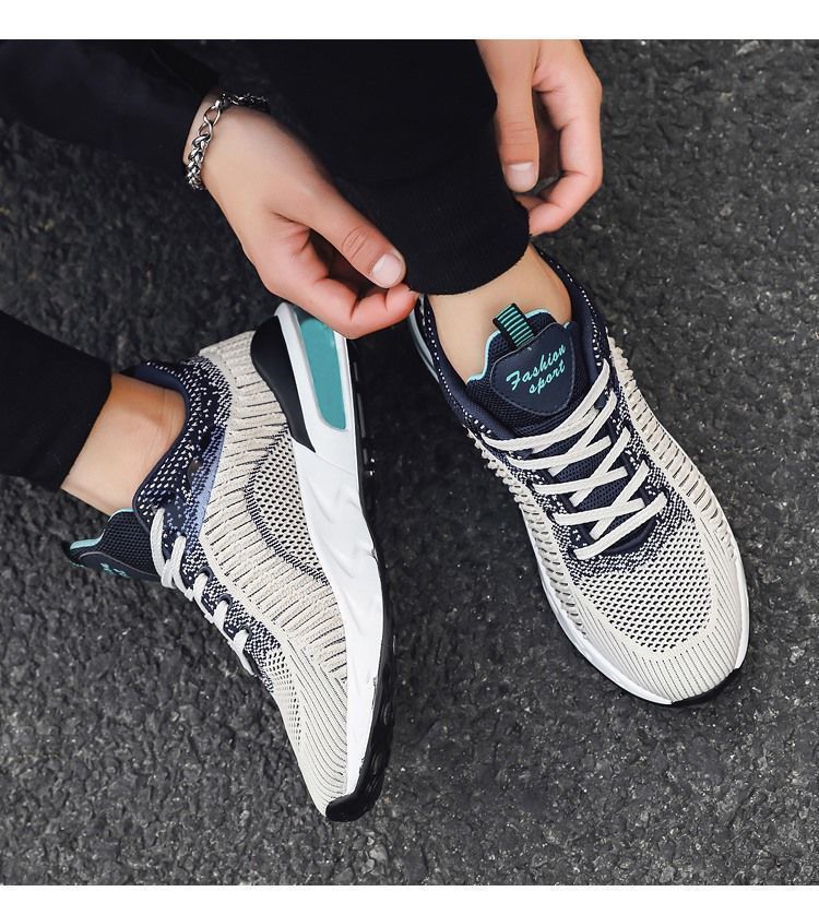 【厚底增高】透氣潮流休閒時尚男運動鞋【灰色】+【米色】各一雙(優惠400)