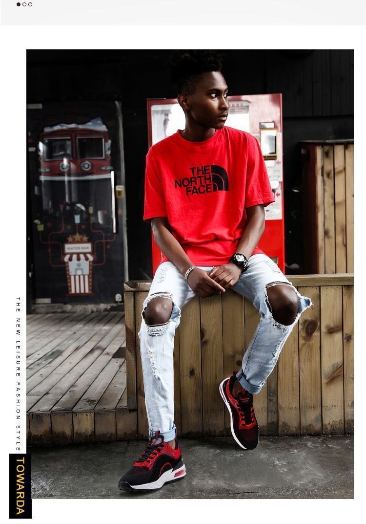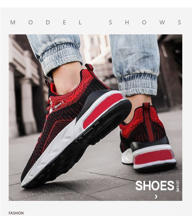 【厚底增高】透氣潮流休閒時尚男運動鞋【黑紅色】+【灰色】各一雙(優惠400)