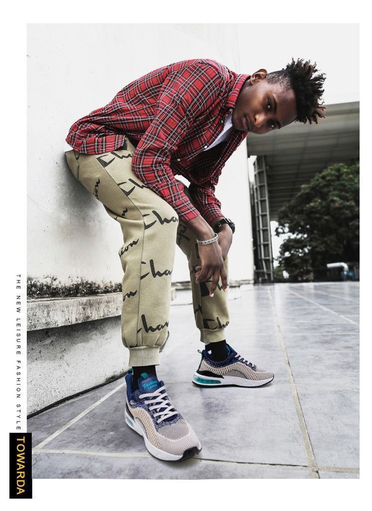 【厚底增高】透氣潮流休閒時尚男運動鞋【黑紅色】+【米色】各一雙(優惠400)
