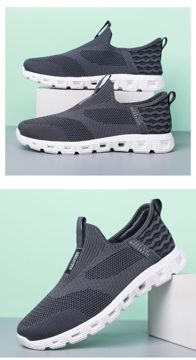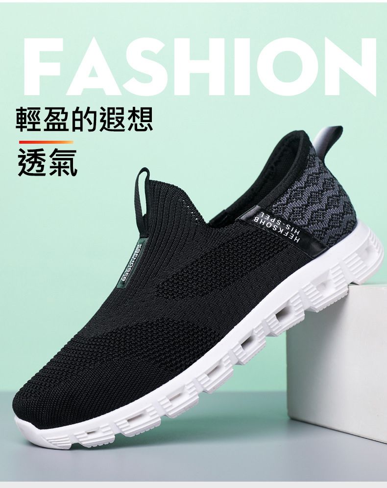 【軟彈科技】透氣網面一腳蹬男鞋【灰色】+【黑色】各一雙(優惠400)
