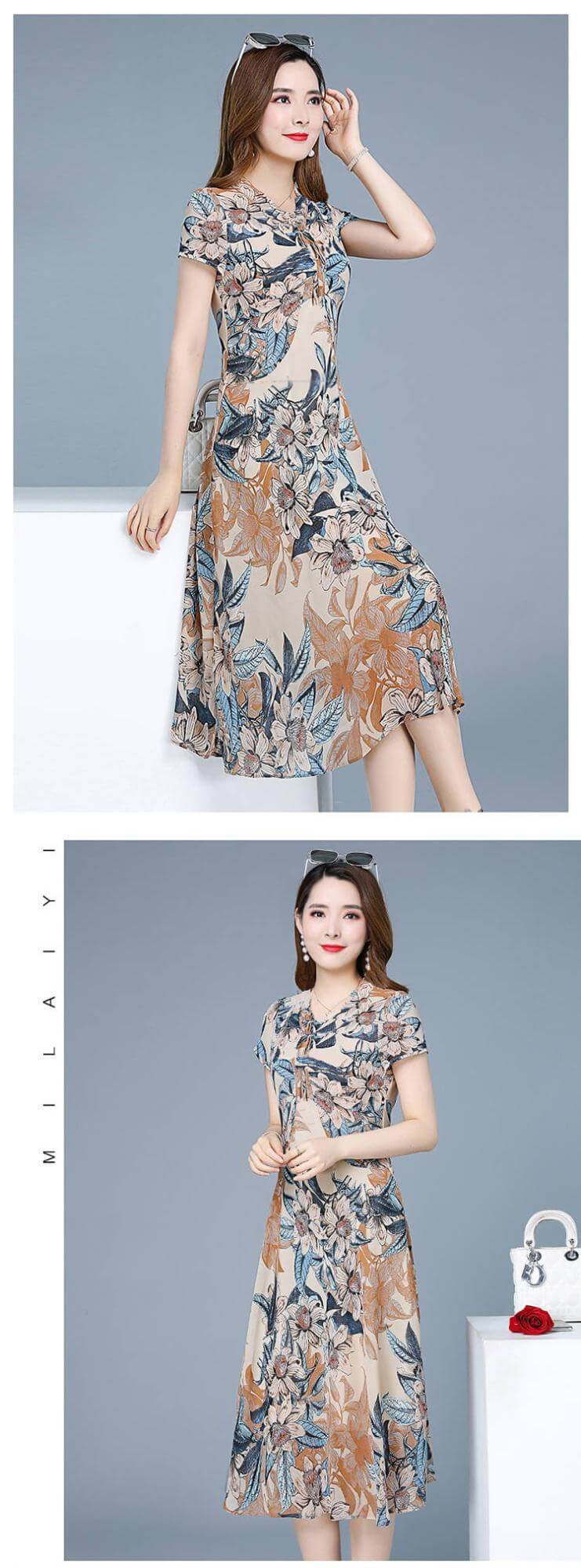 氣質清涼媽媽中長款連衣裙【秒殺4件!】藍色+磚紅色各2件(到手4件,每件均價399元)