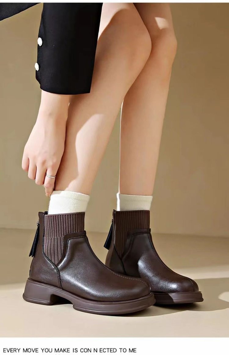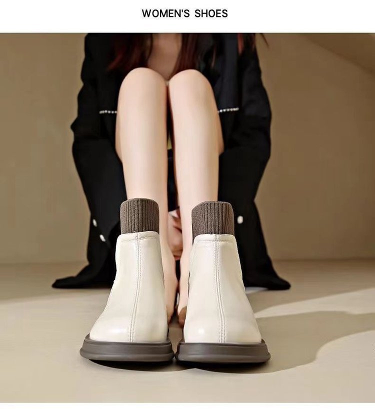 厚底後拉鏈秋冬洋氣女靴【米白色】一雙