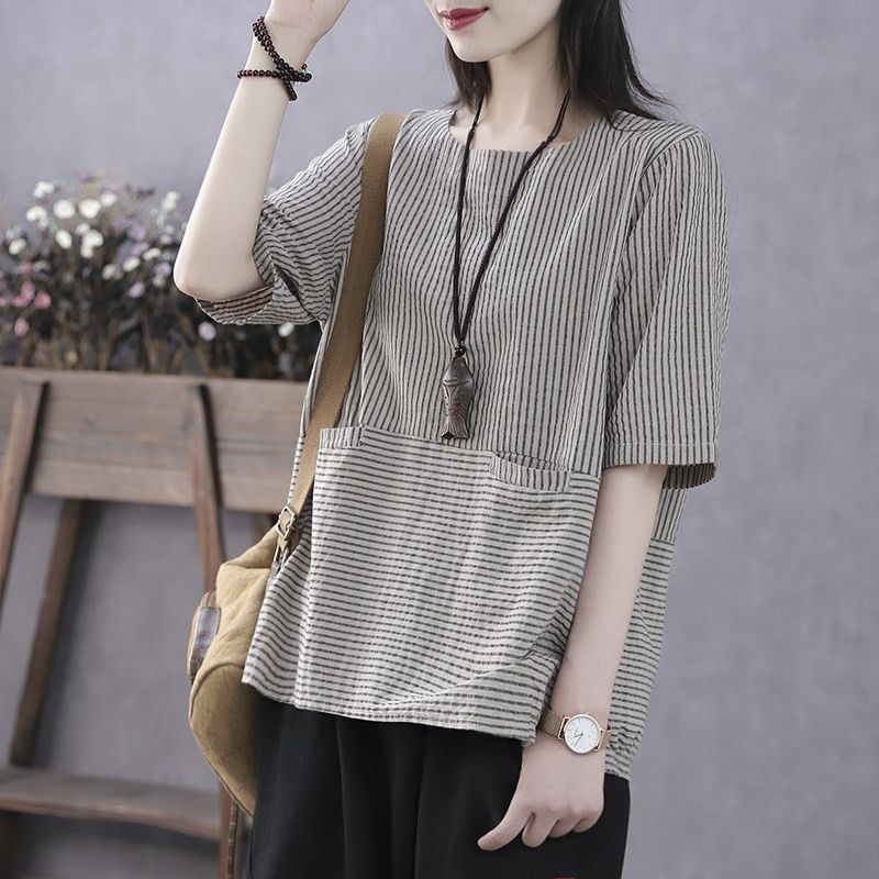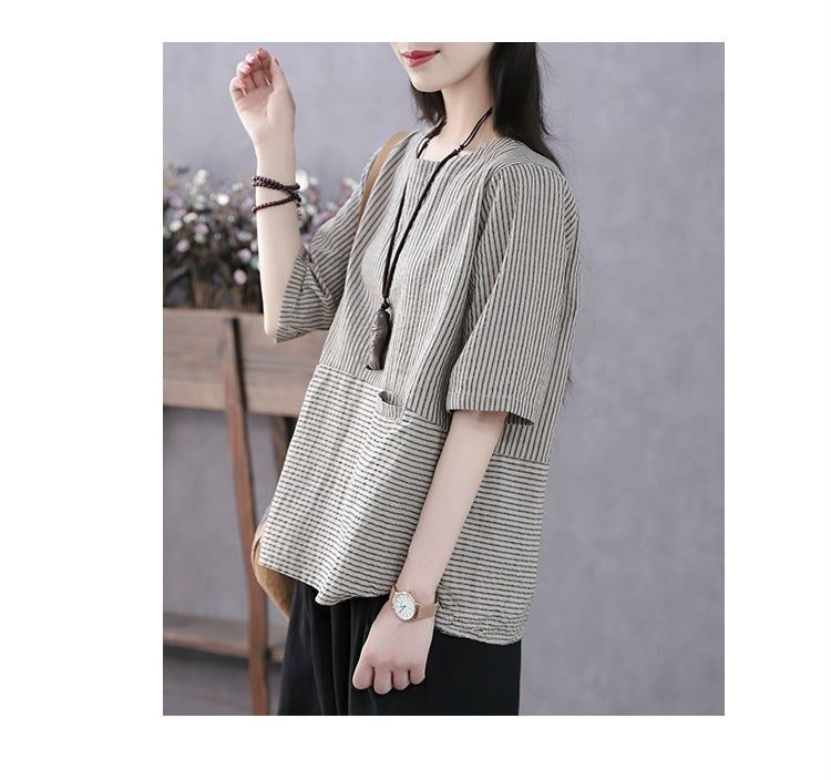 【年中鉅惠!買一送二!】女士夏季薄款復古寬鬆五分袖T恤