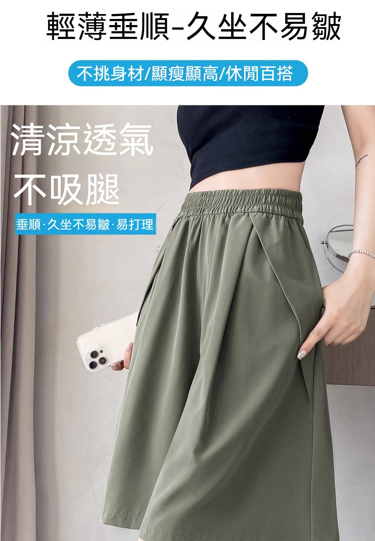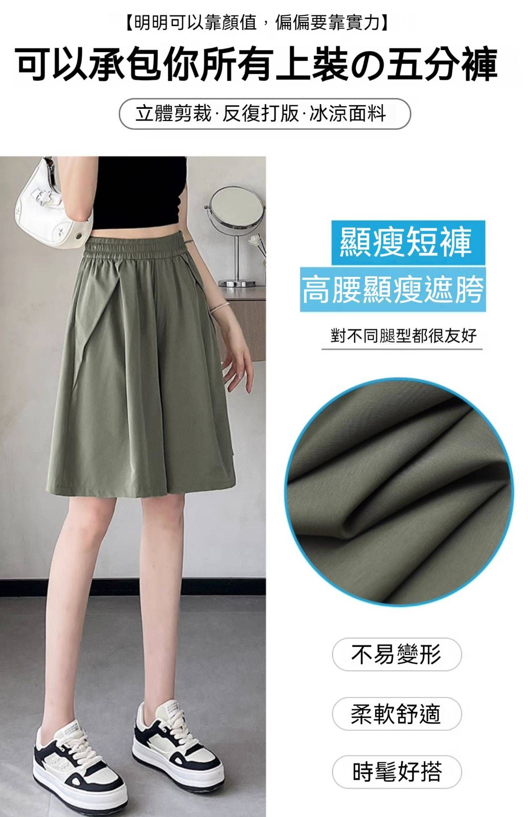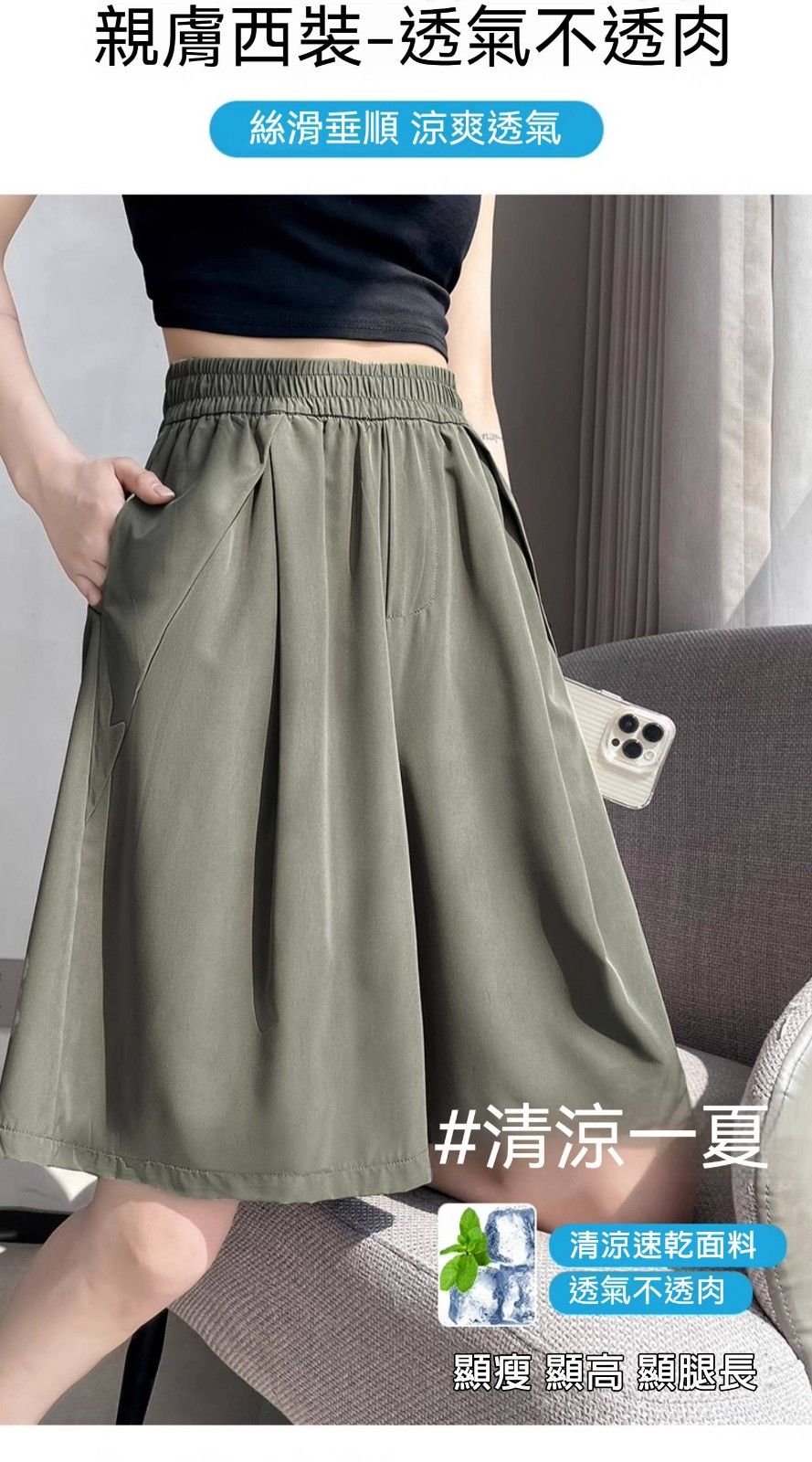 清爽舒適冰爽五分裙【買一送一】軍綠色+杏色各一條(到手兩條,每條均價499)