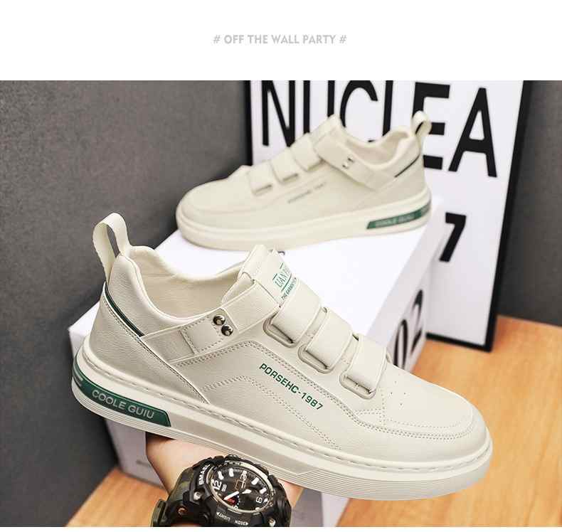 四季可穿無鞋帶皮革休閒男鞋【白色】+【米色】各一雙(到手2雙,每雙均價549元!)