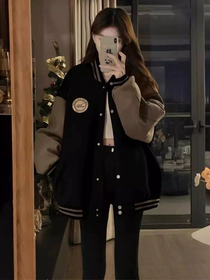慵懶風棒球服外套【買一送一】【黑色】+【淺棕色】各一件(到手兩件,每件649元!)