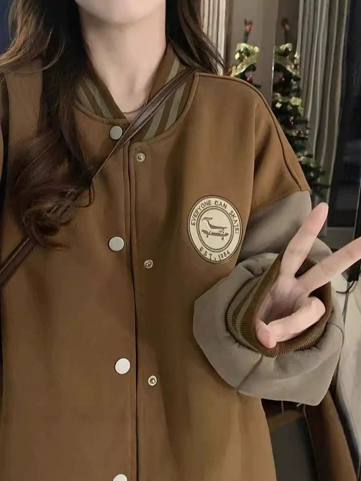慵懶風棒球服外套【買一送一】【淺棕色】2件(到手兩件,每件649元!)
