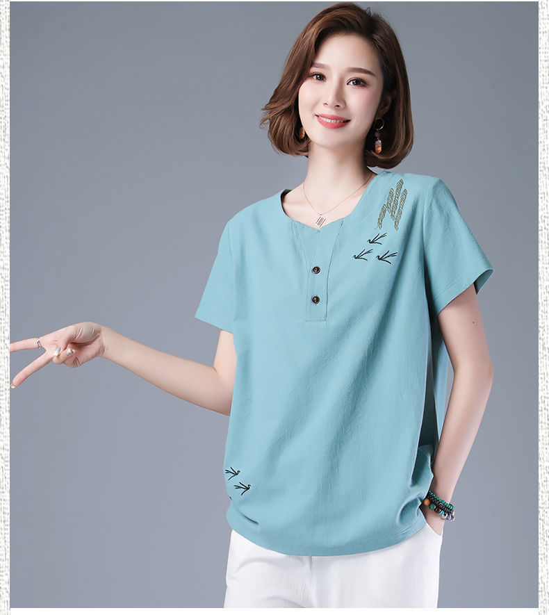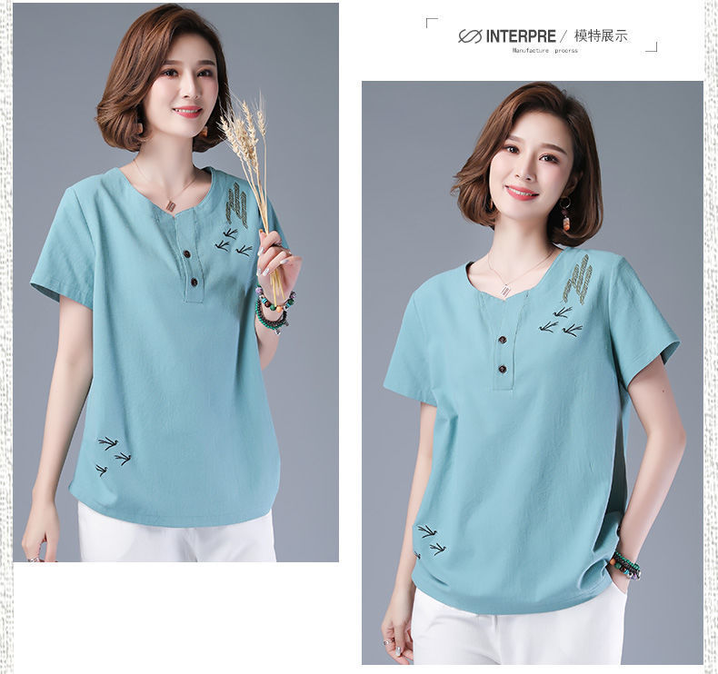棉麻復古風短袖女士T恤【買一送一】藍色+橘色各一件(到手2件!每件均價549元!)