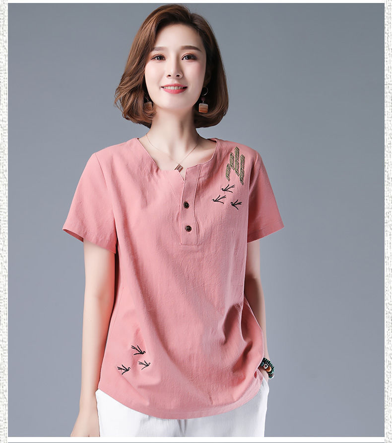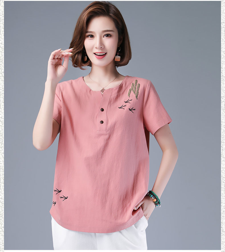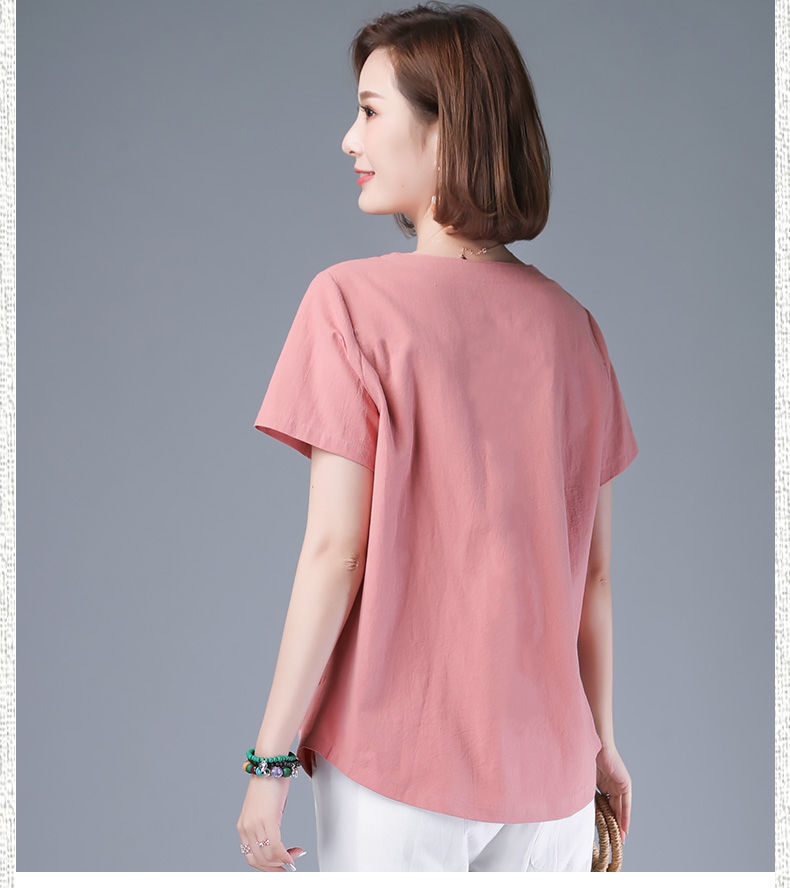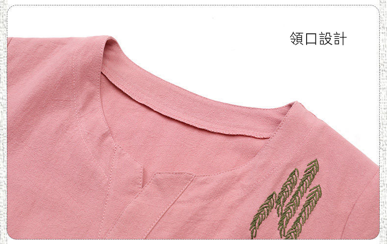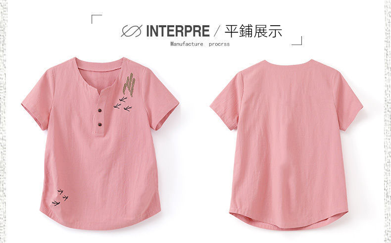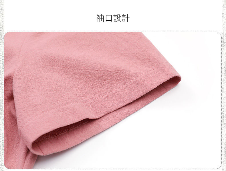 棉麻復古風短袖女士T恤【買一送一】粉色+藍色各一件(到手2件!每件均價549元!)