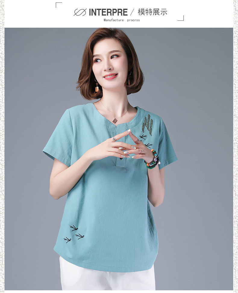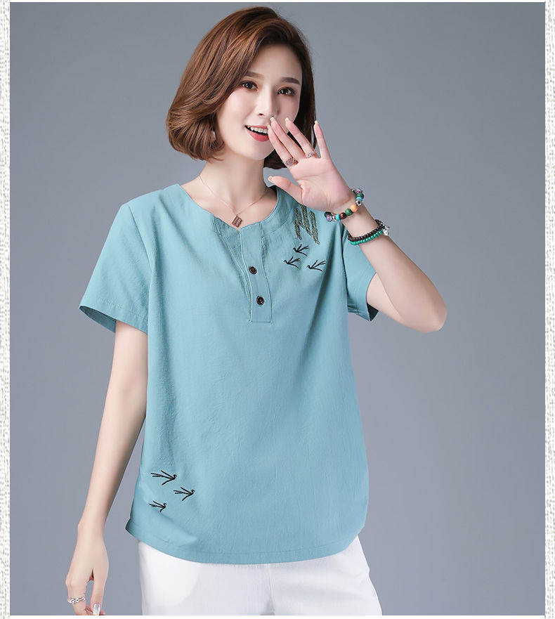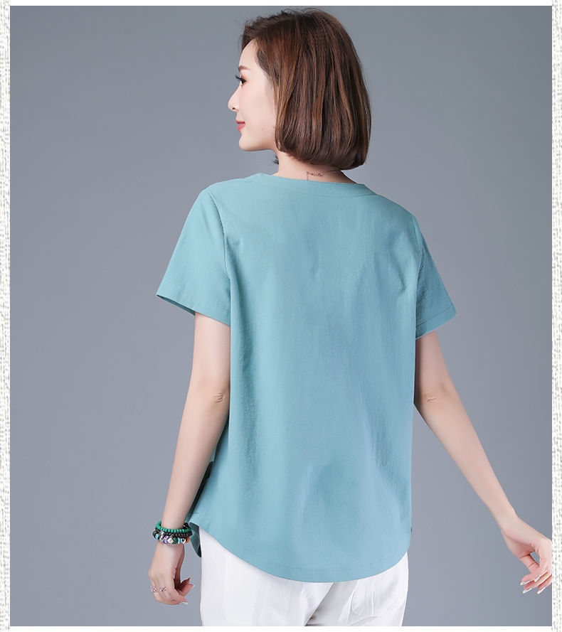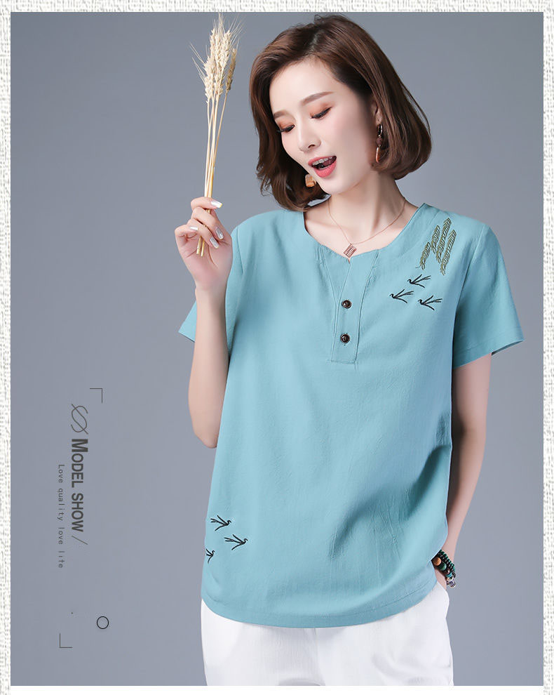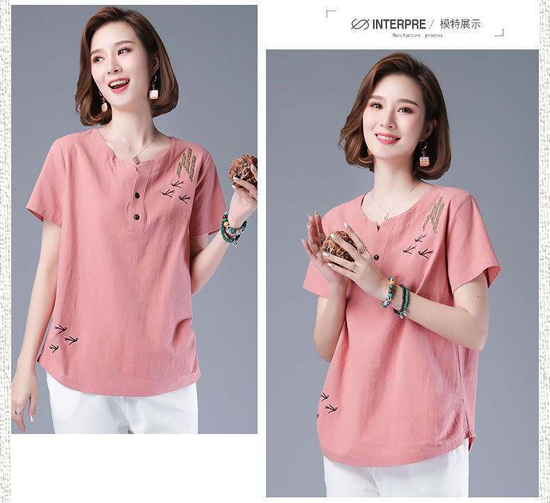 棉麻復古風短袖女士T恤【買一送一】粉色+藍色各一件(到手2件!每件均價549元!)