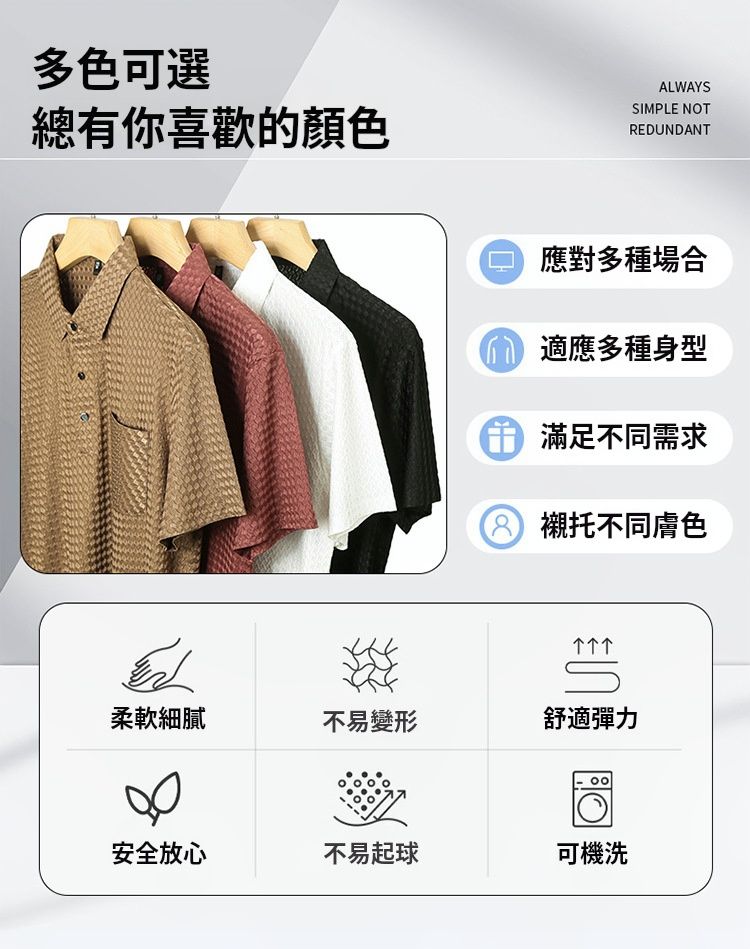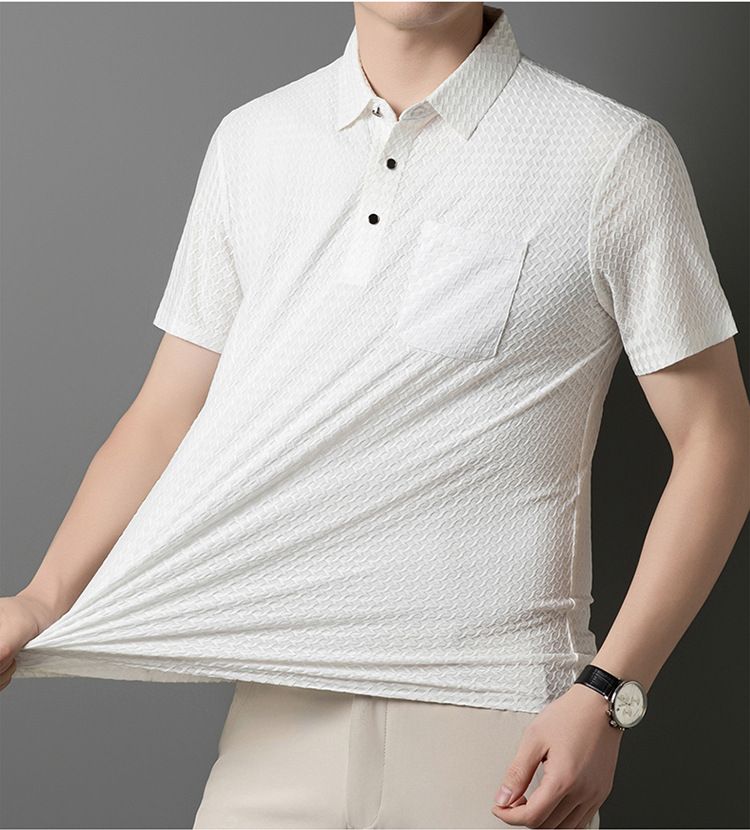 透氣冰絲翻領短袖POLO衫【買一送一】【白色】+【紅色】各一件(到手兩件,每件均價649元!)