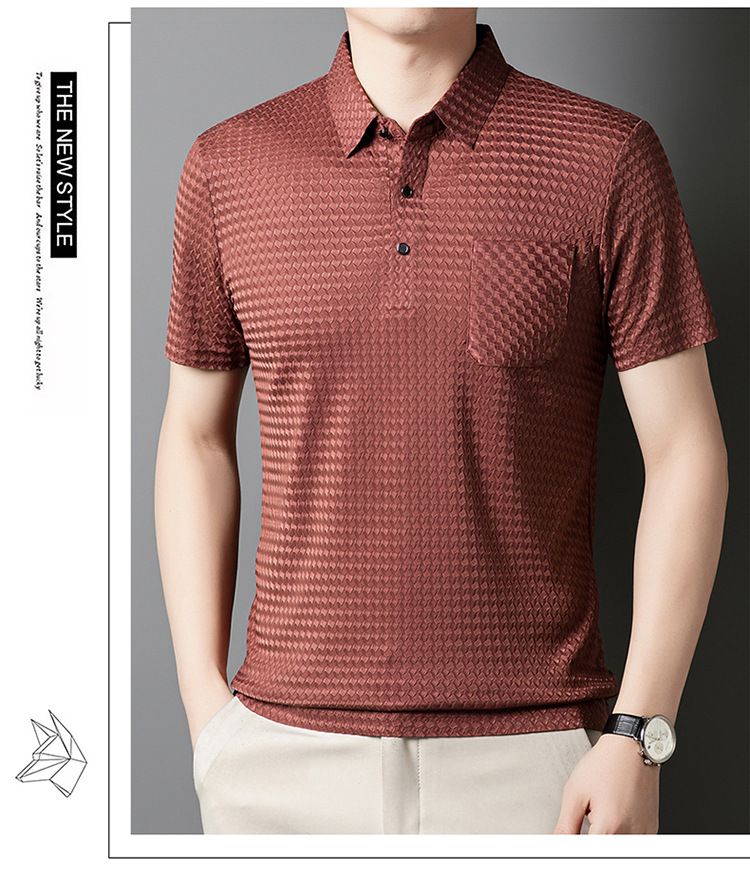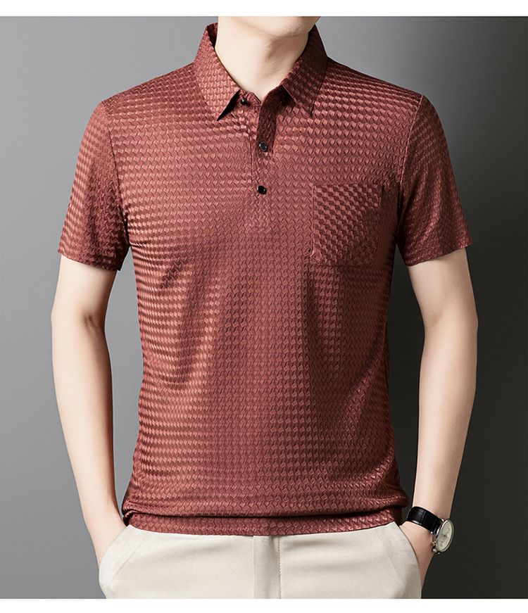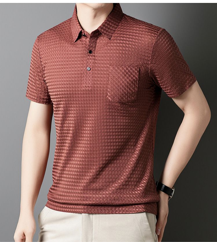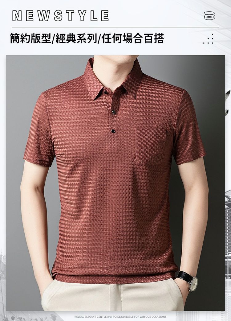 透氣冰絲翻領短袖POLO衫【買一送一】【棕黃】+【紅色】各一件(到手兩件,每件均價649元!)