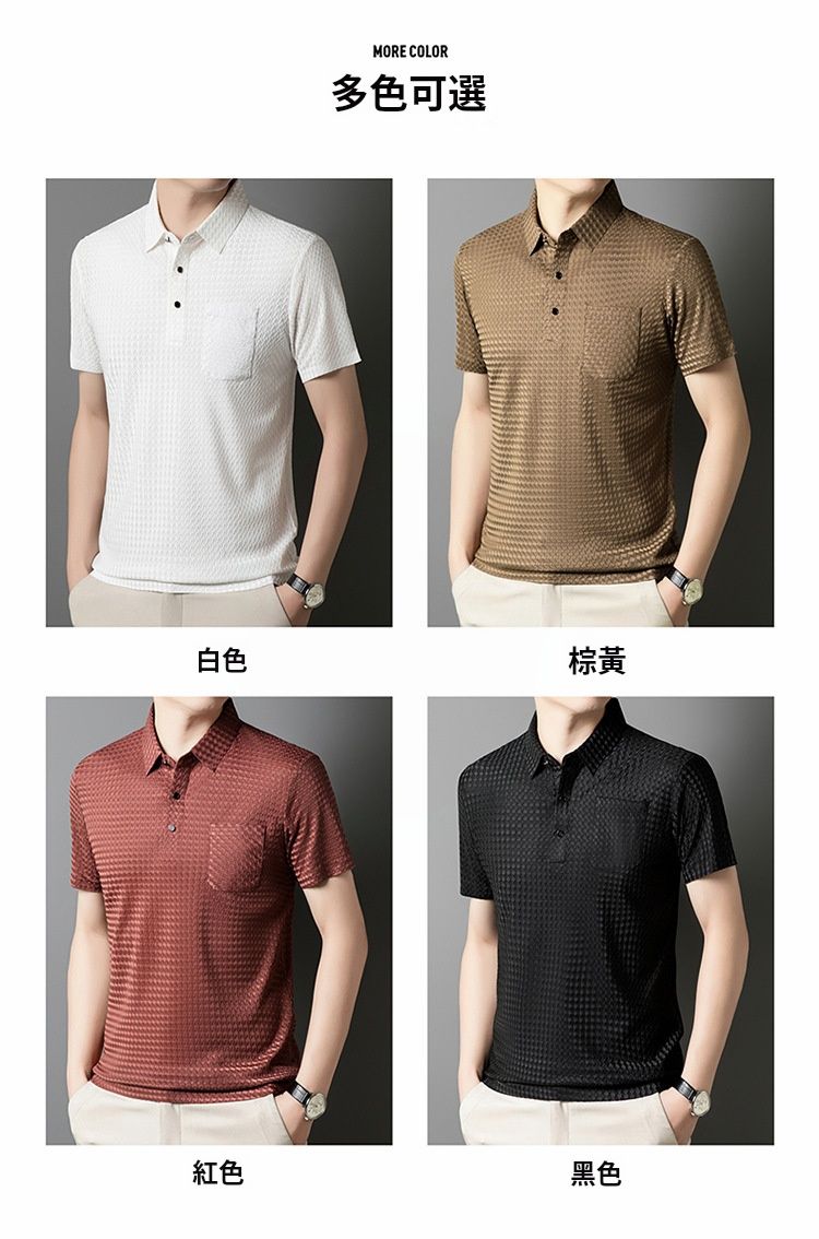 透氣冰絲翻領短袖POLO衫【秒殺4件!】【棕黃】+【黑色】+【白色】+【紅色】各一件(到手4件,每件均價549元!)