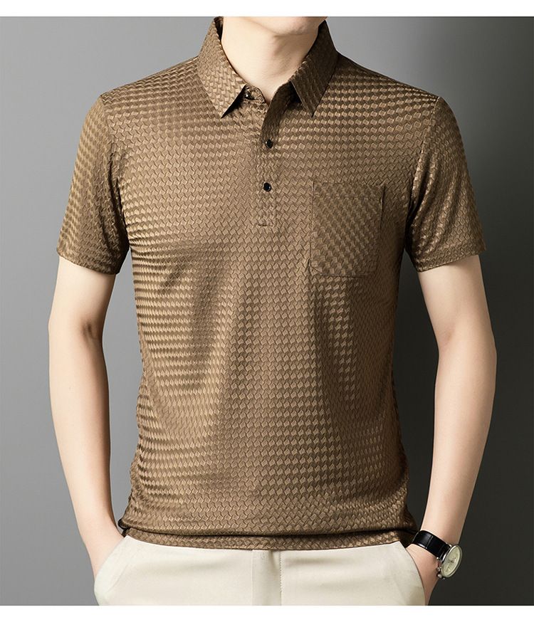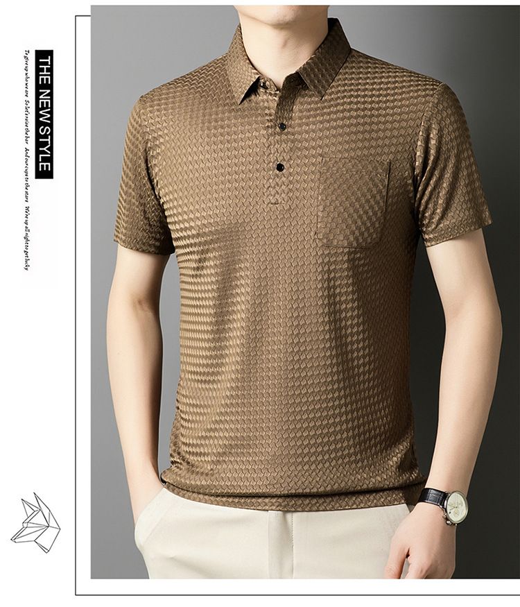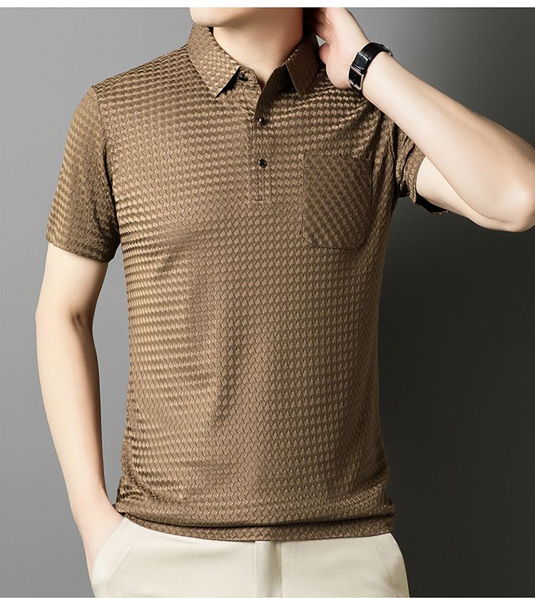 透氣冰絲翻領短袖POLO衫【買一送一】【棕黃】+【黑色】各一件(到手兩件,每件均價649元!)