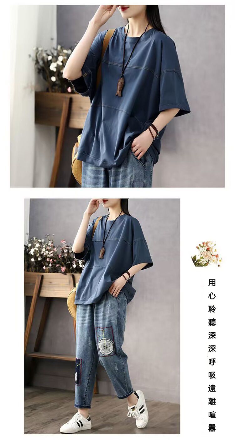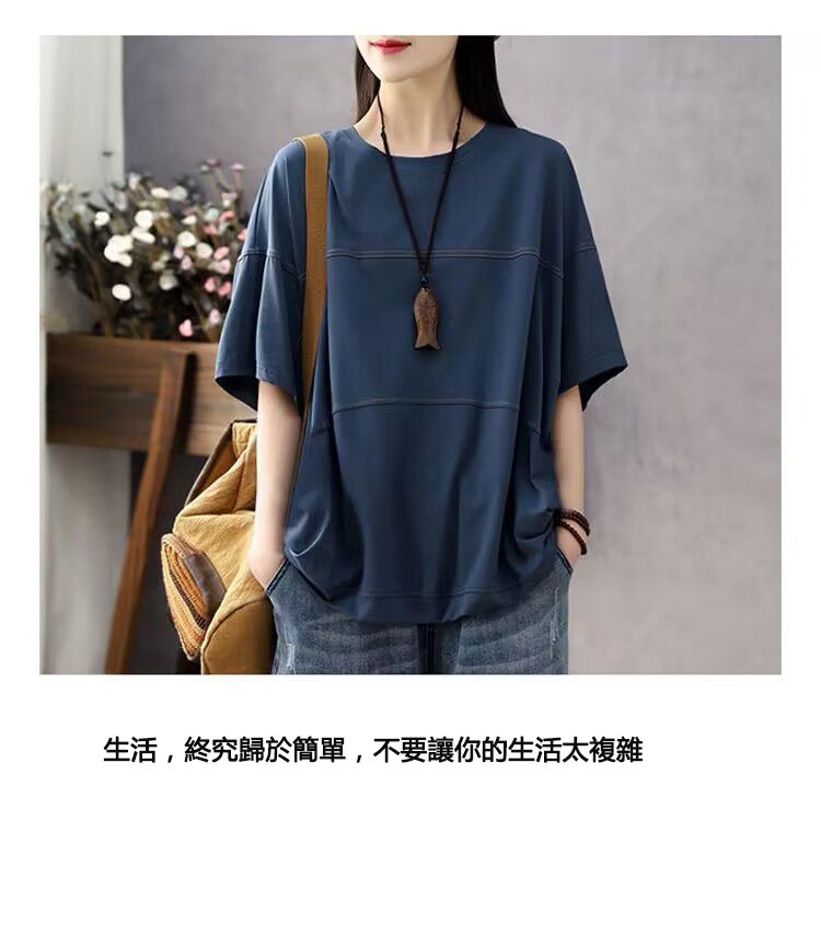 線條拼接復古顯瘦女士短袖【買一送一】藍色兩件(到手兩件,每件均價499元)