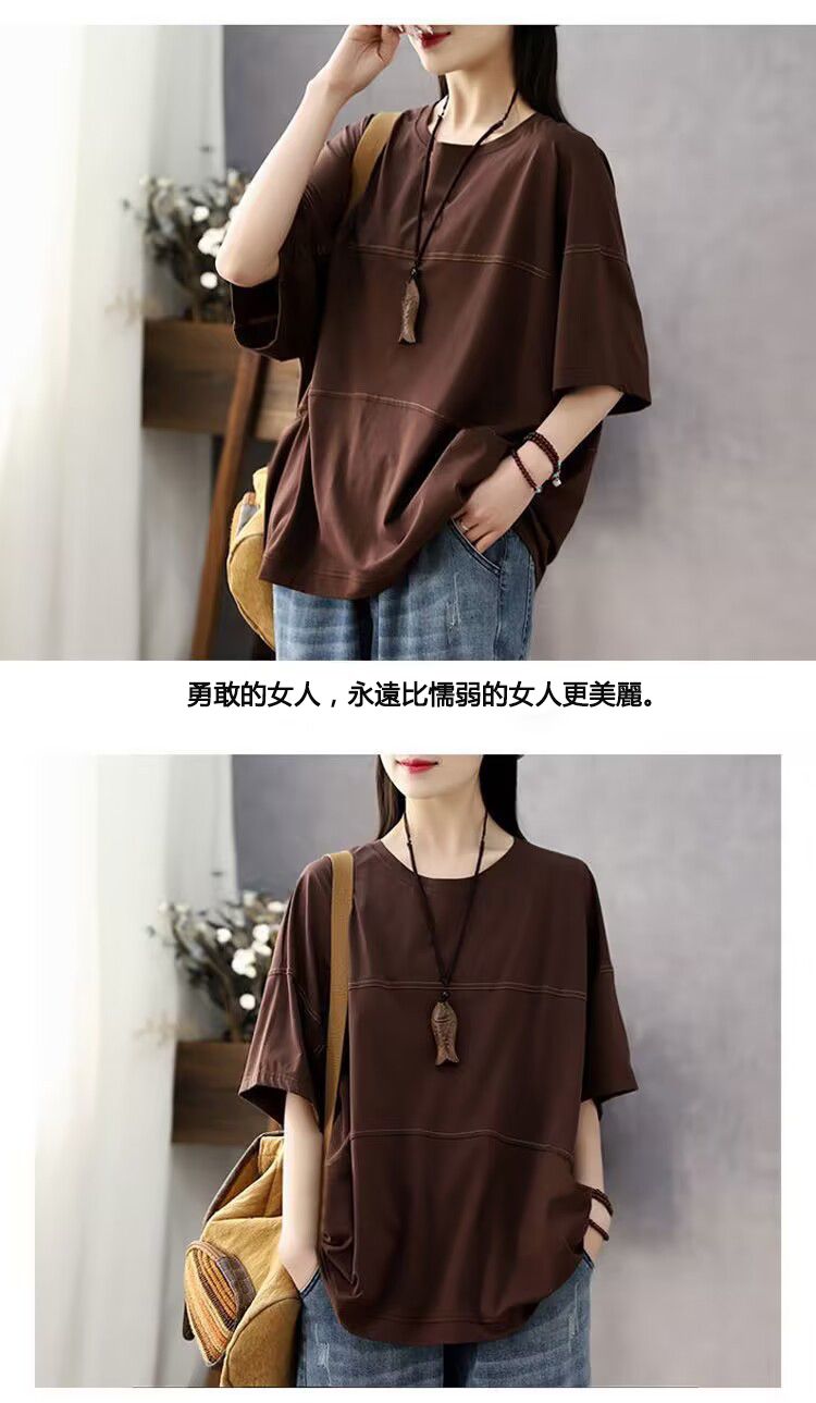 線條拼接復古顯瘦女士短袖【買一送一】咖色兩件(到手兩件,每件均價499元)