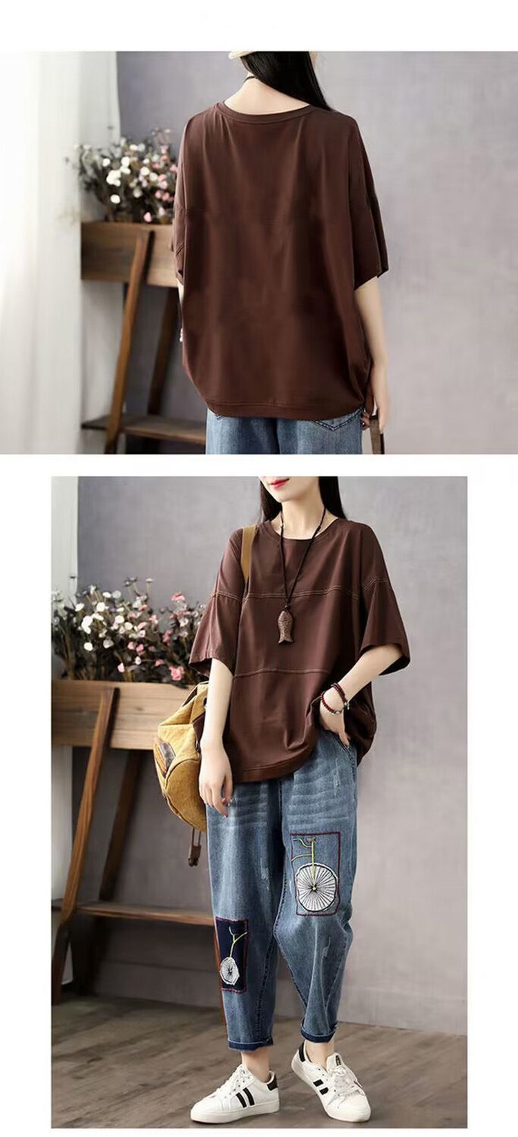 線條拼接復古顯瘦女士短袖【買一送一】藍色+咖色各一件(到手兩件,每件均價499元)
