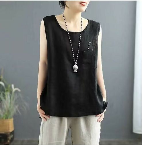 輕柔棉麻舒適百搭無袖圓領吊帶【買一送二】藍色+黑色+白色各一件(到手3件!每件均價333元!)