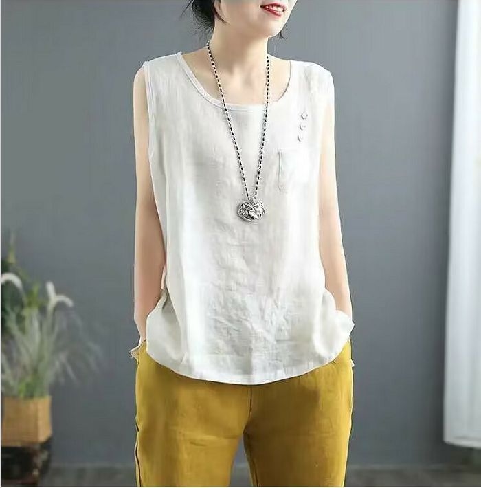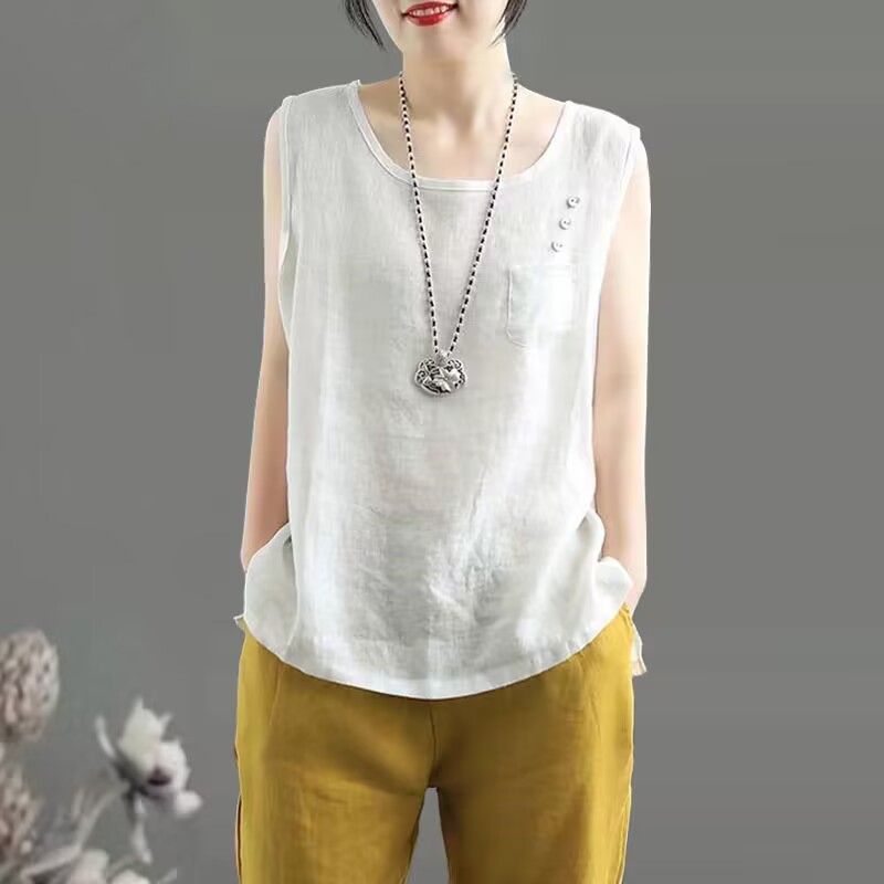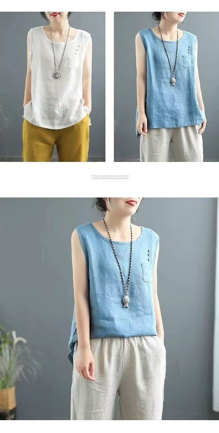 輕柔棉麻舒適百搭無袖圓領吊帶【買一送二】黃色+藍色+白色各一件(到手3件!每件均價333元!)