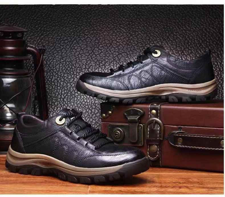 韌性十足四季可穿皮面運動男鞋【買一送一】【棕色】+【黑色】各一雙(到手兩雙,每雙均價549元!)