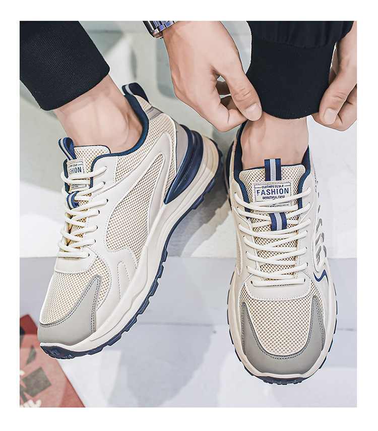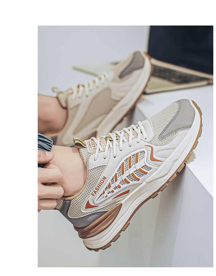 網面透氣厚底增高休閒運動鞋【米色】一雙