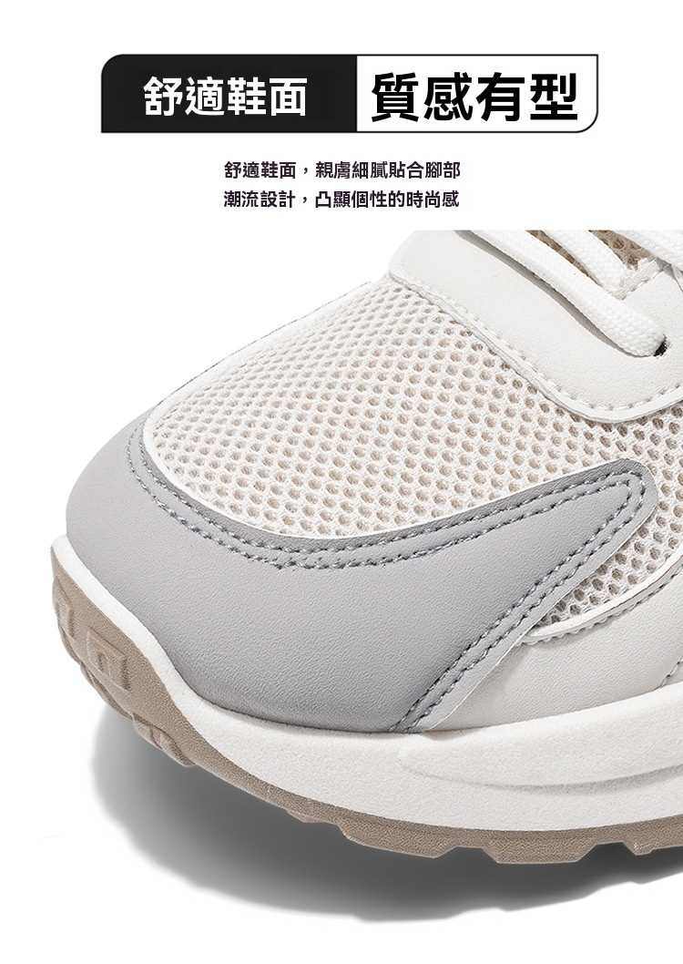 網面透氣厚底增高休閒運動鞋【灰色】+【米色】各一雙(優惠400,到手2雙,每雙均價798元)